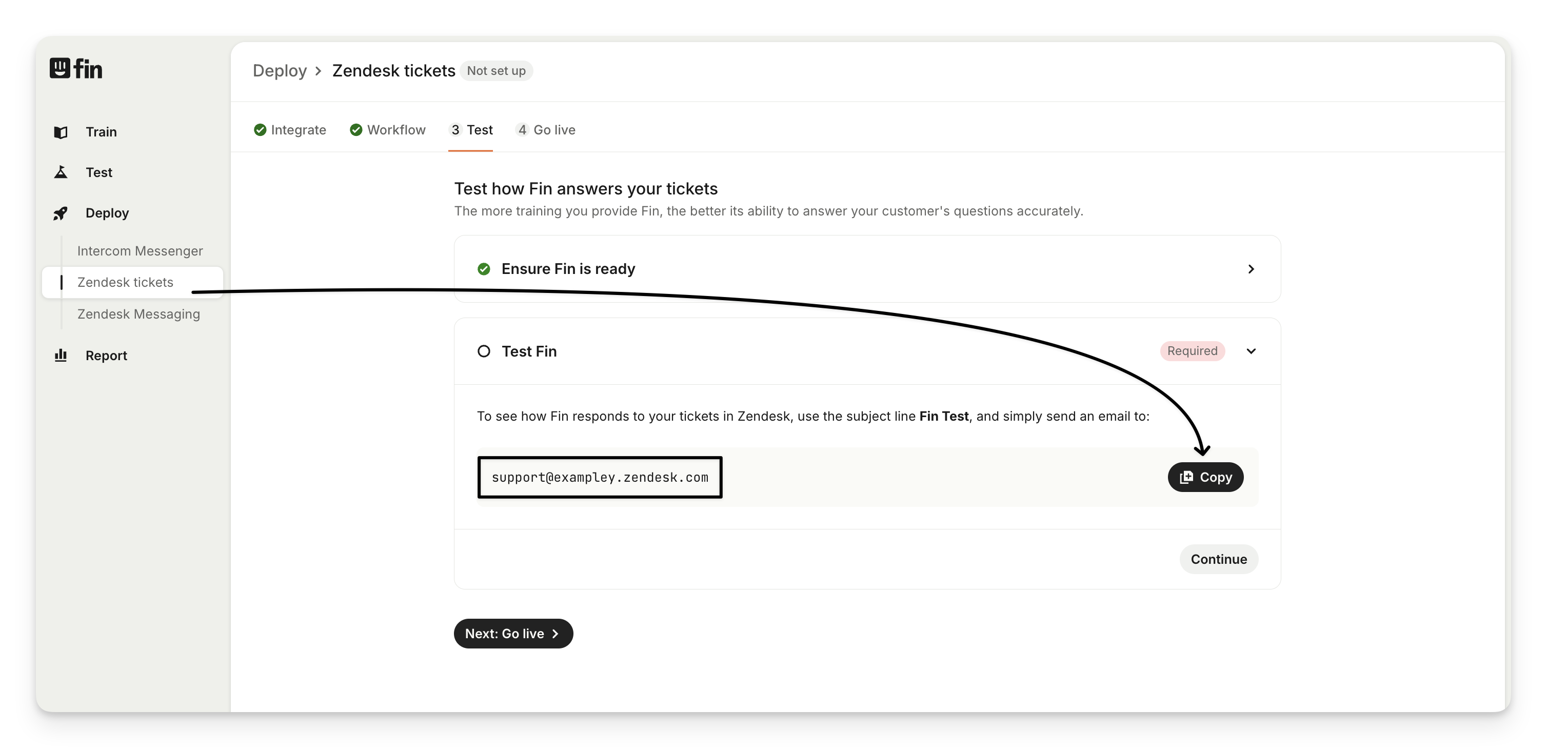 Go to Deploy > Zendesk tickets.