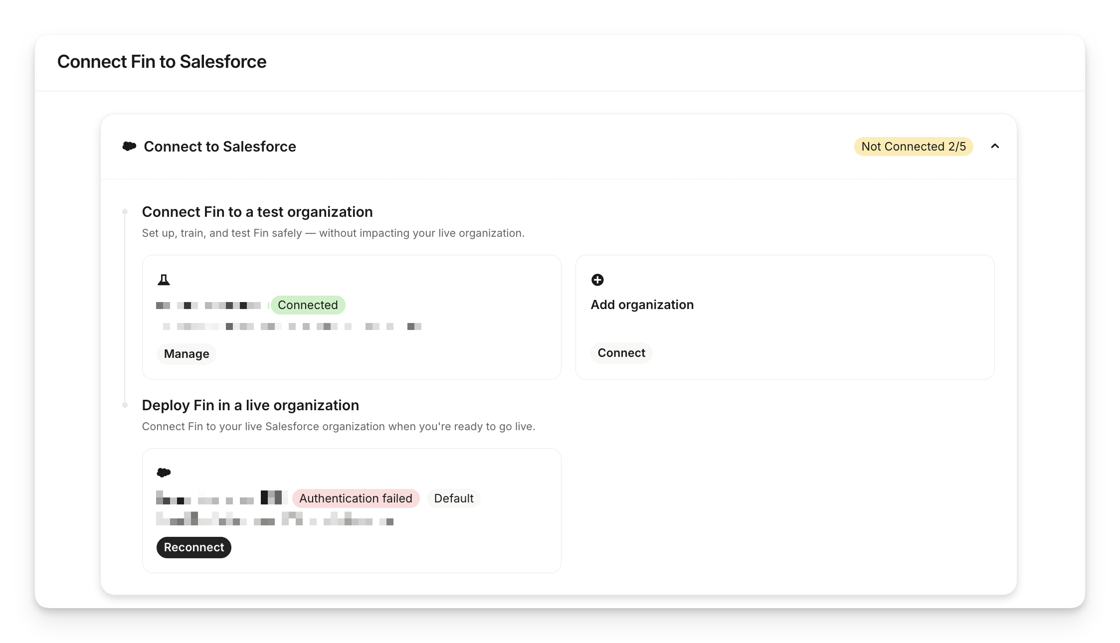 Sweo currently supports only one active OAuth connection to Salesforce per workspace. The only exception is for Salesforce knowledge article sync, where multiple connections are supported to allow syncing knowledge bases across different Salesforce orgs. If you need to switch your main OAuth connection, disconnect the existing one before connecting a new Salesforce instance.