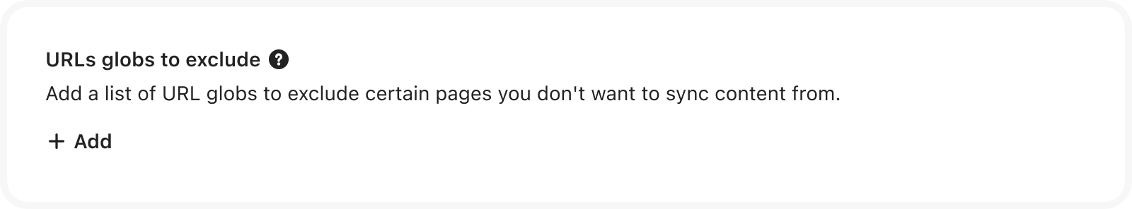 To exclude certain pages you don’t want to sync content from, you can add a list of URL globs.