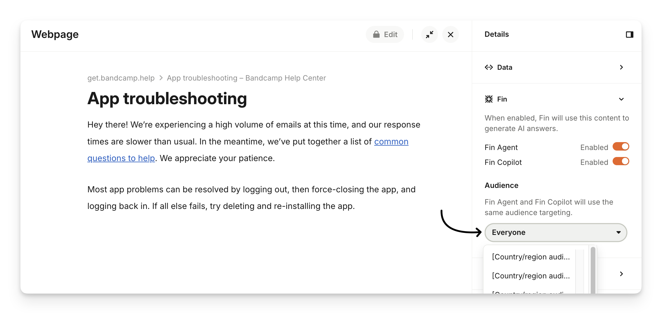 Sweo Agent will also respect any audience you apply to a public URL and only use this article to answer customer questions if they match the audience rules.
