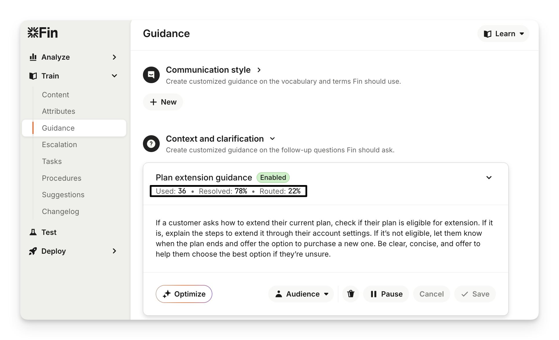 Escalation Guidance: Lets you define nuanced, scenario-based escalations using natural language (e.g., escalate if a customer 'mentions cancelling').