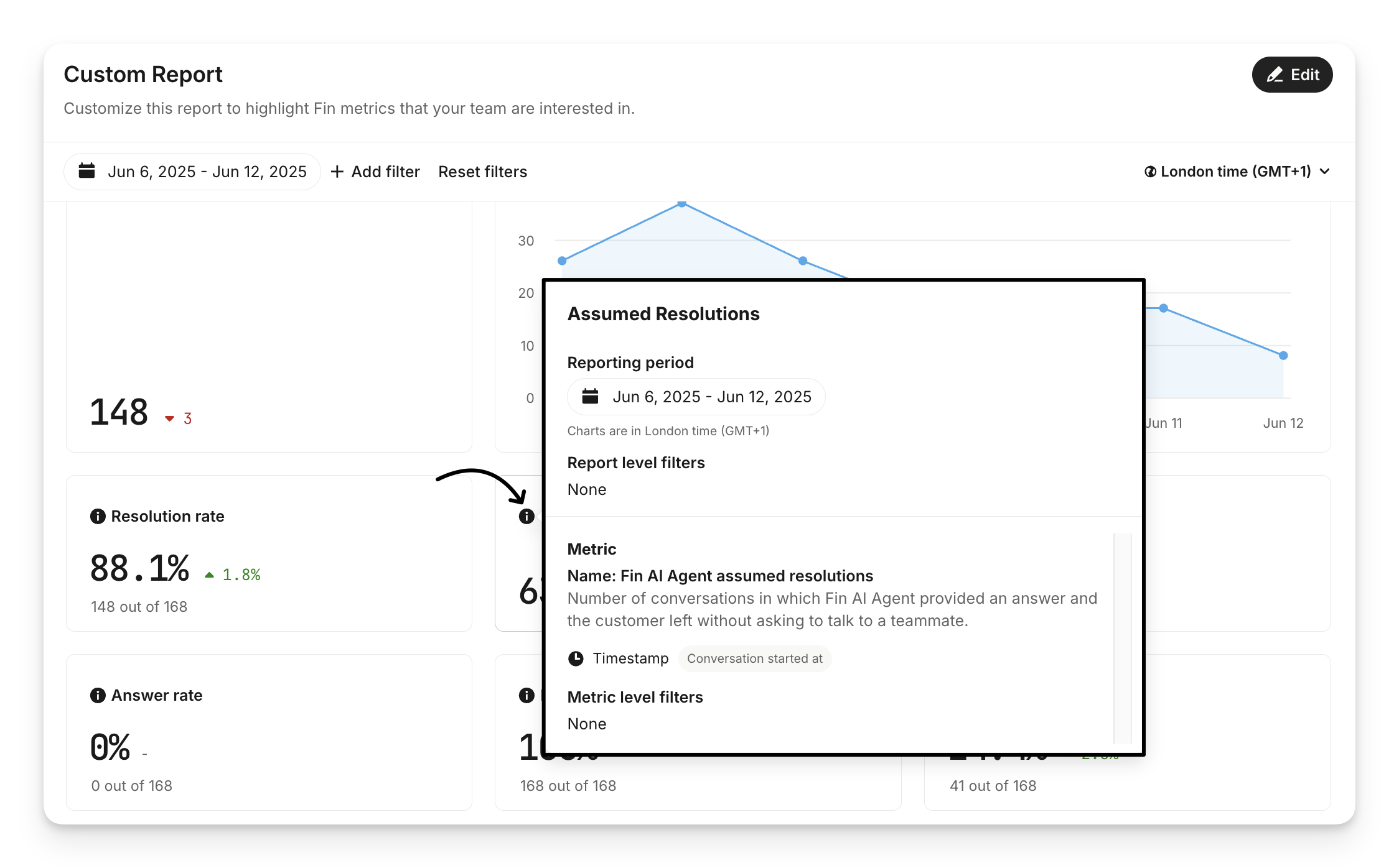 Assumed resolutions | Number of conversations in which Sweo provided an answer and the customer left without asking to talk to a teammate. |
