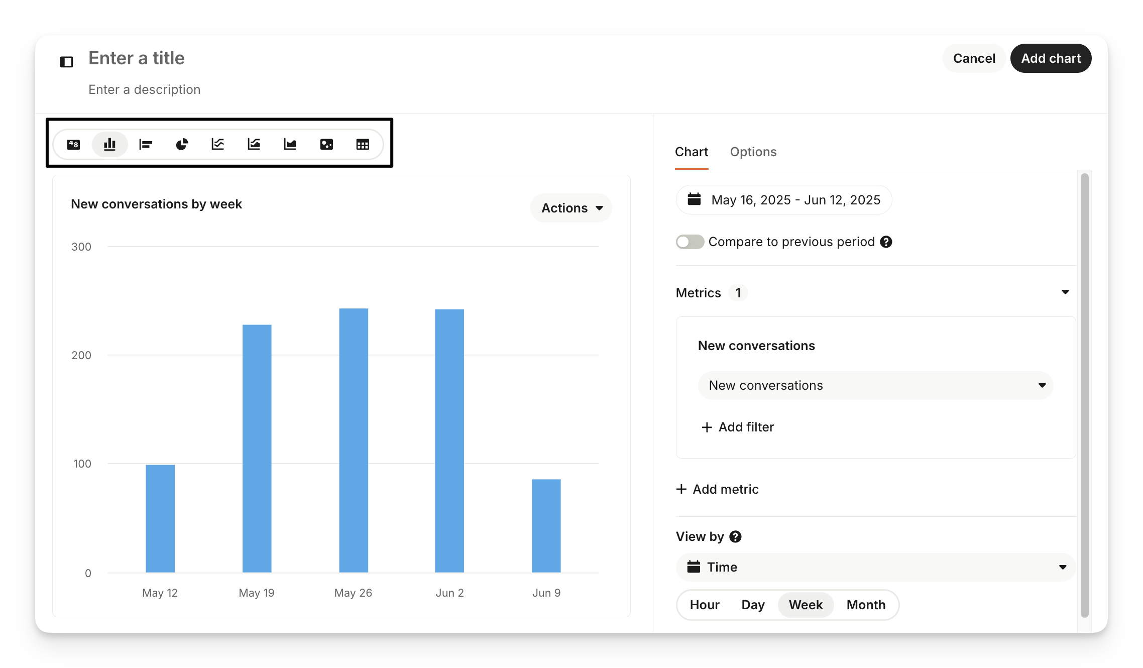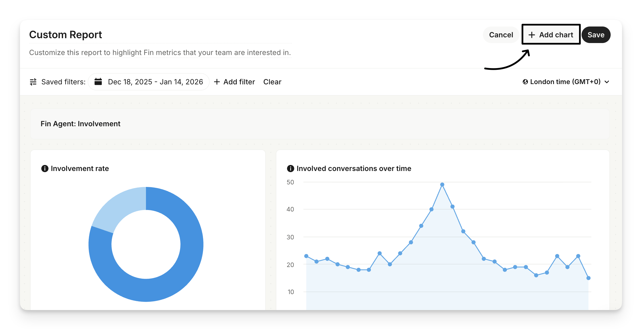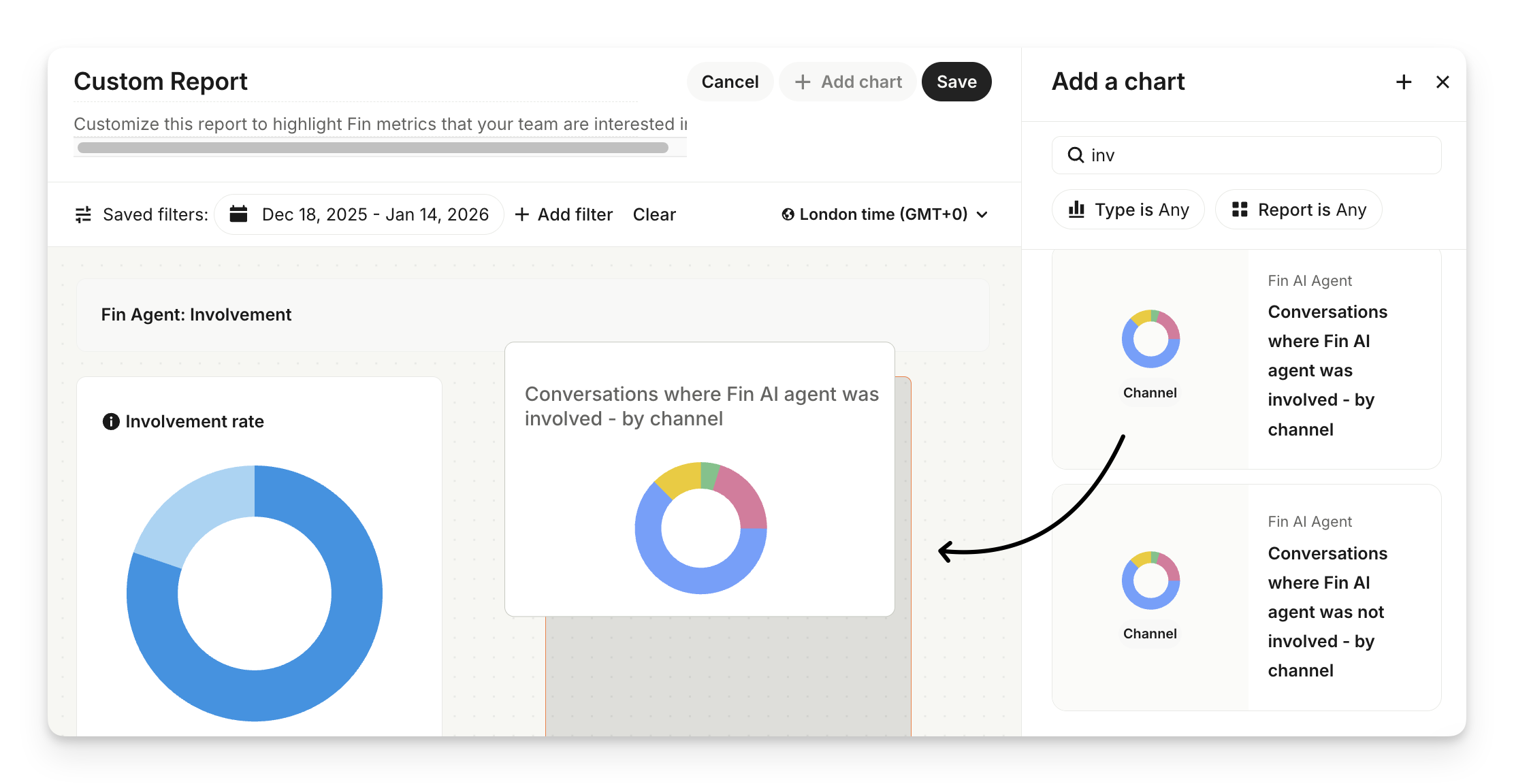 Select Add chart to drag and drop more prebuilt charts from the chart library on the right if you want to measure and track other metrics in this report.