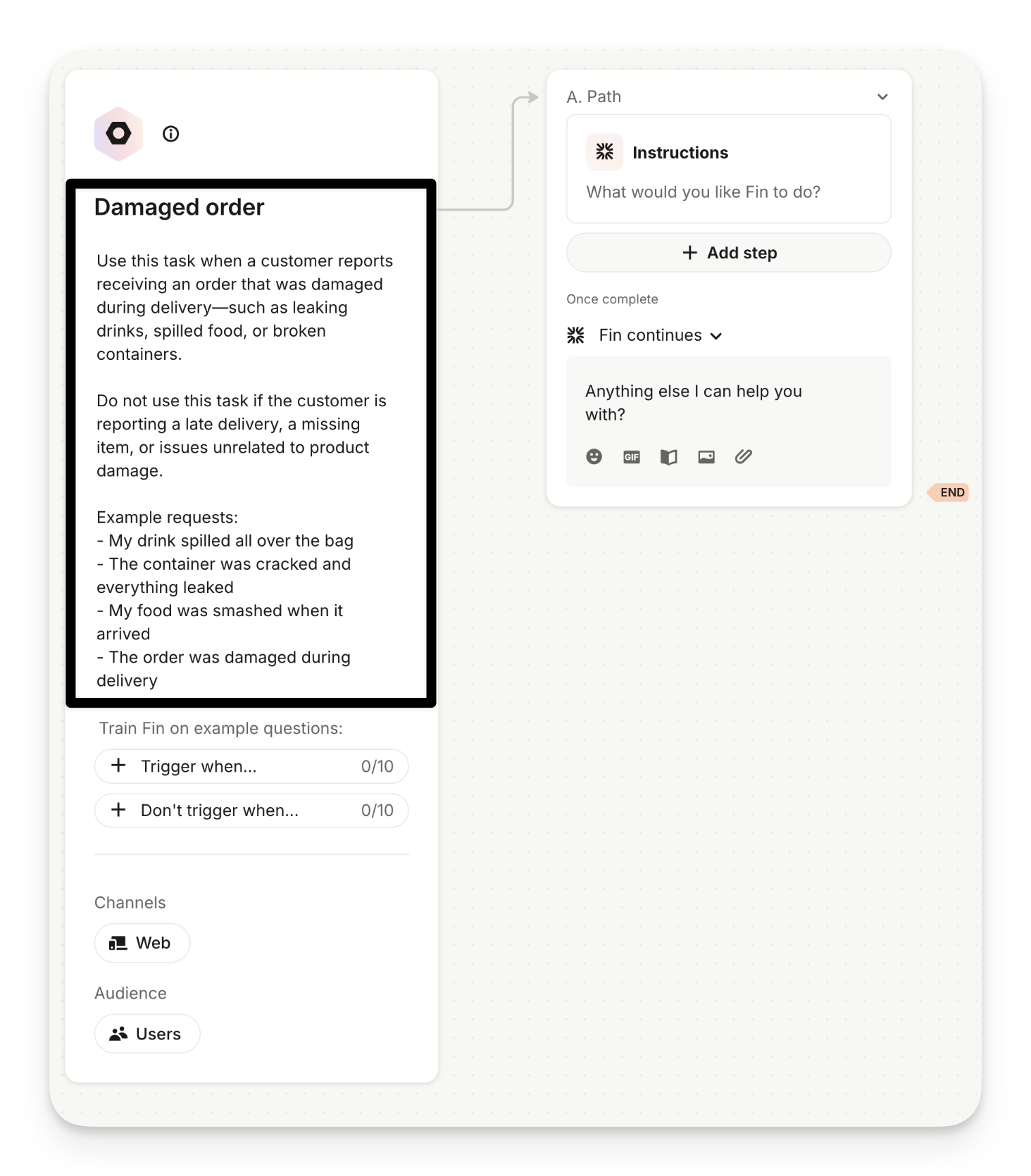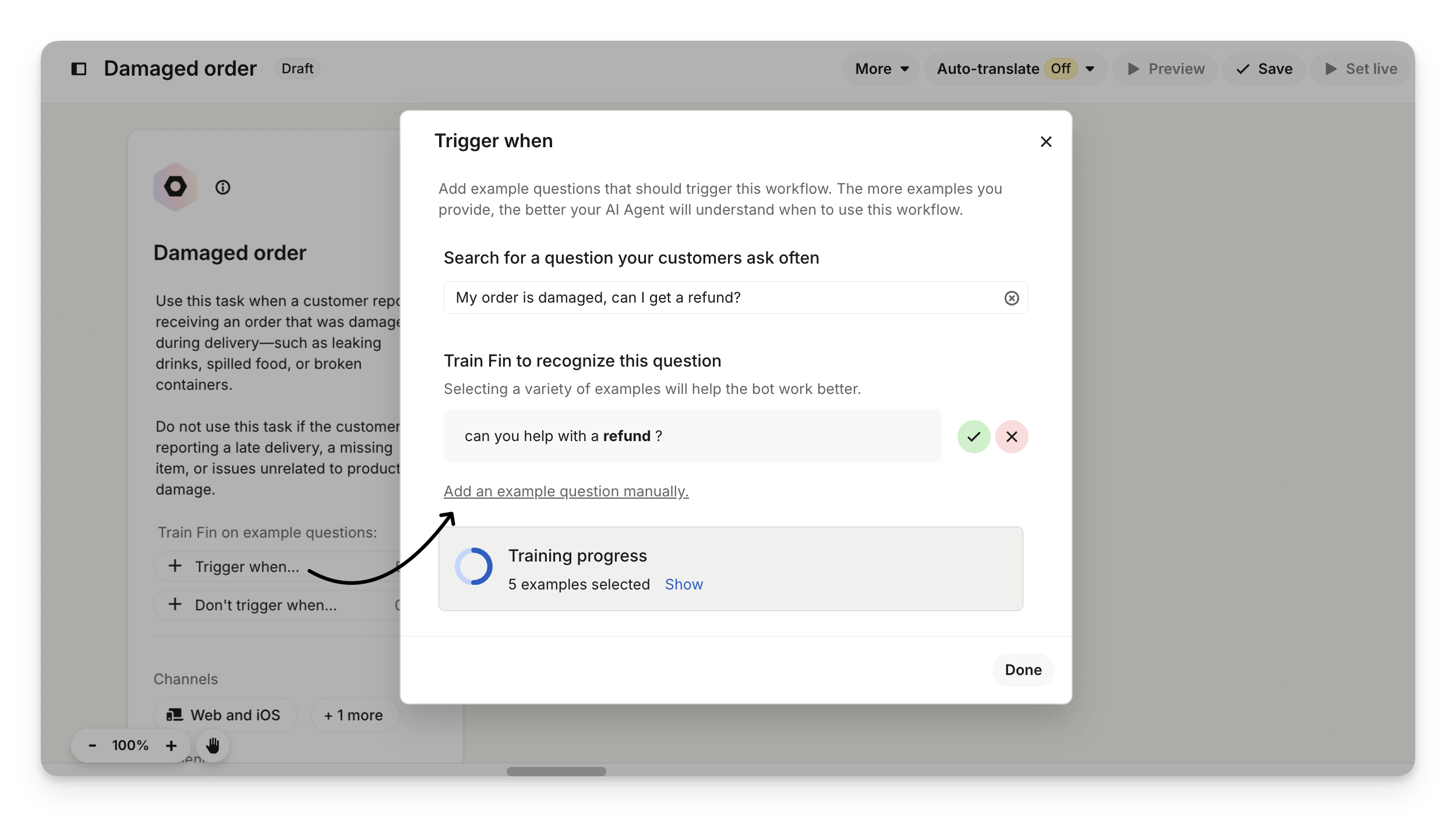 Adding negative examples ("Don't trigger when..."):