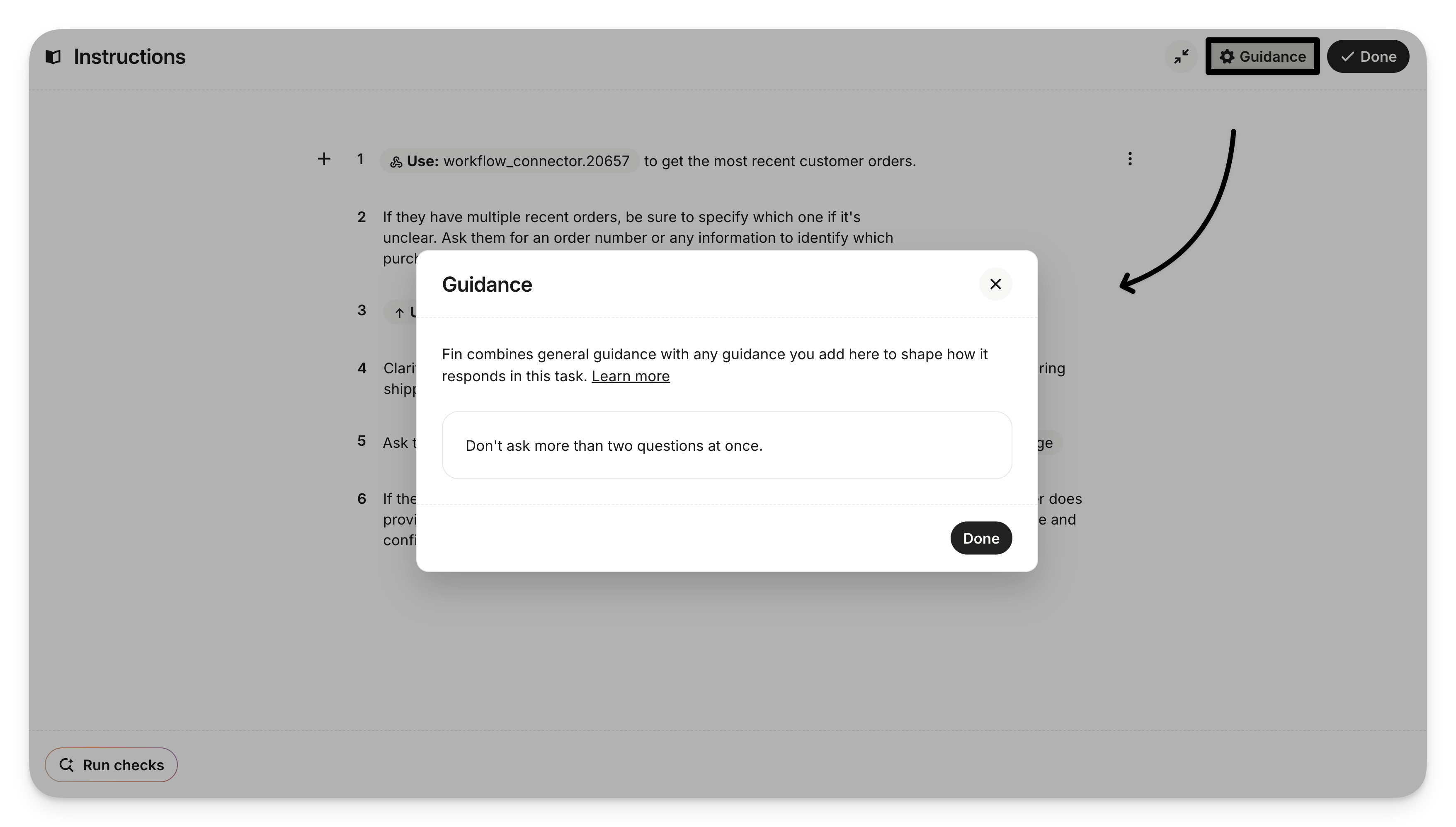 Tip: The Instructions editor can be expanded using the toggle in the top right.