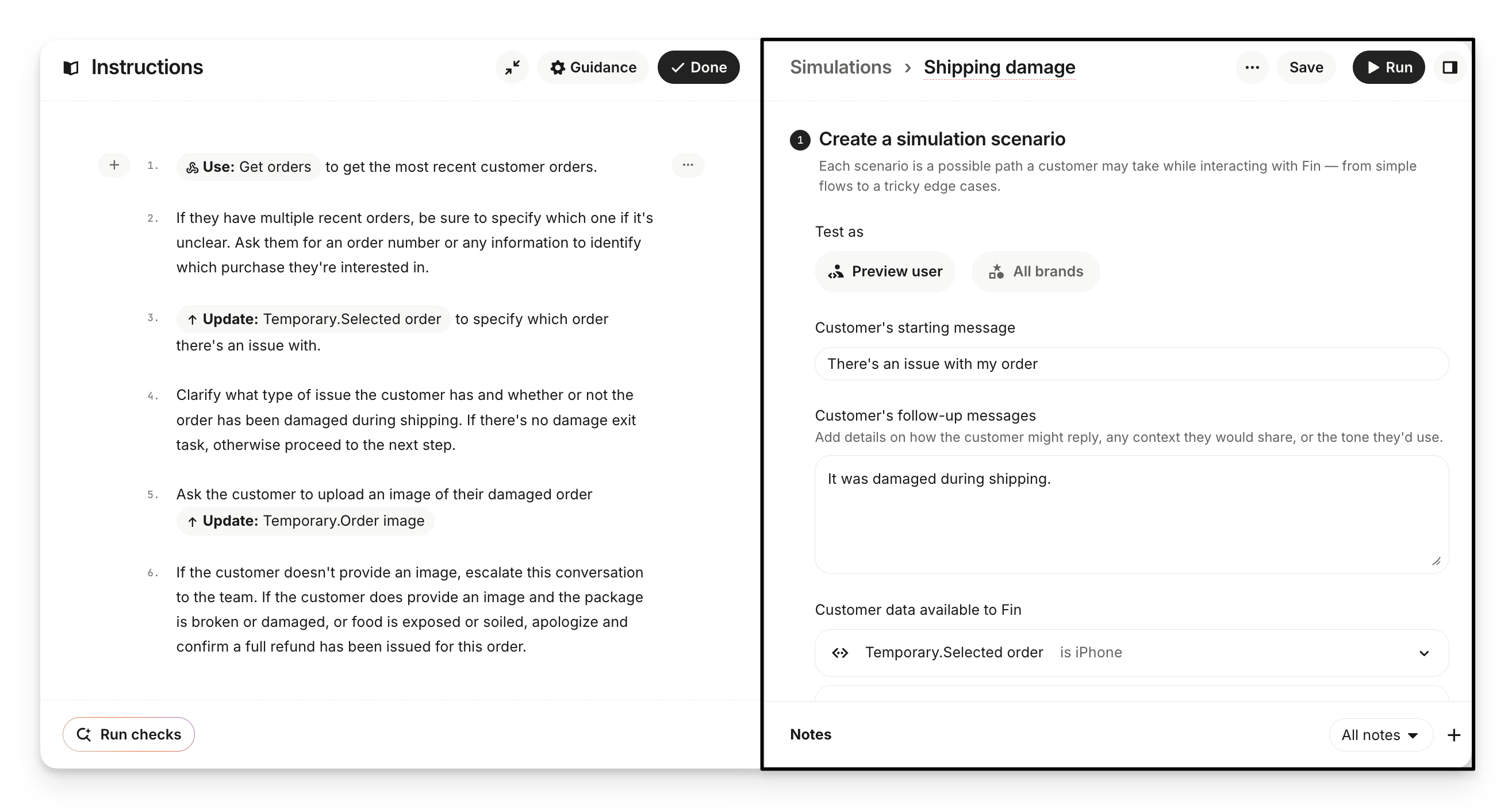 Provide User context — extra details about the customer’s situation, e.g.: