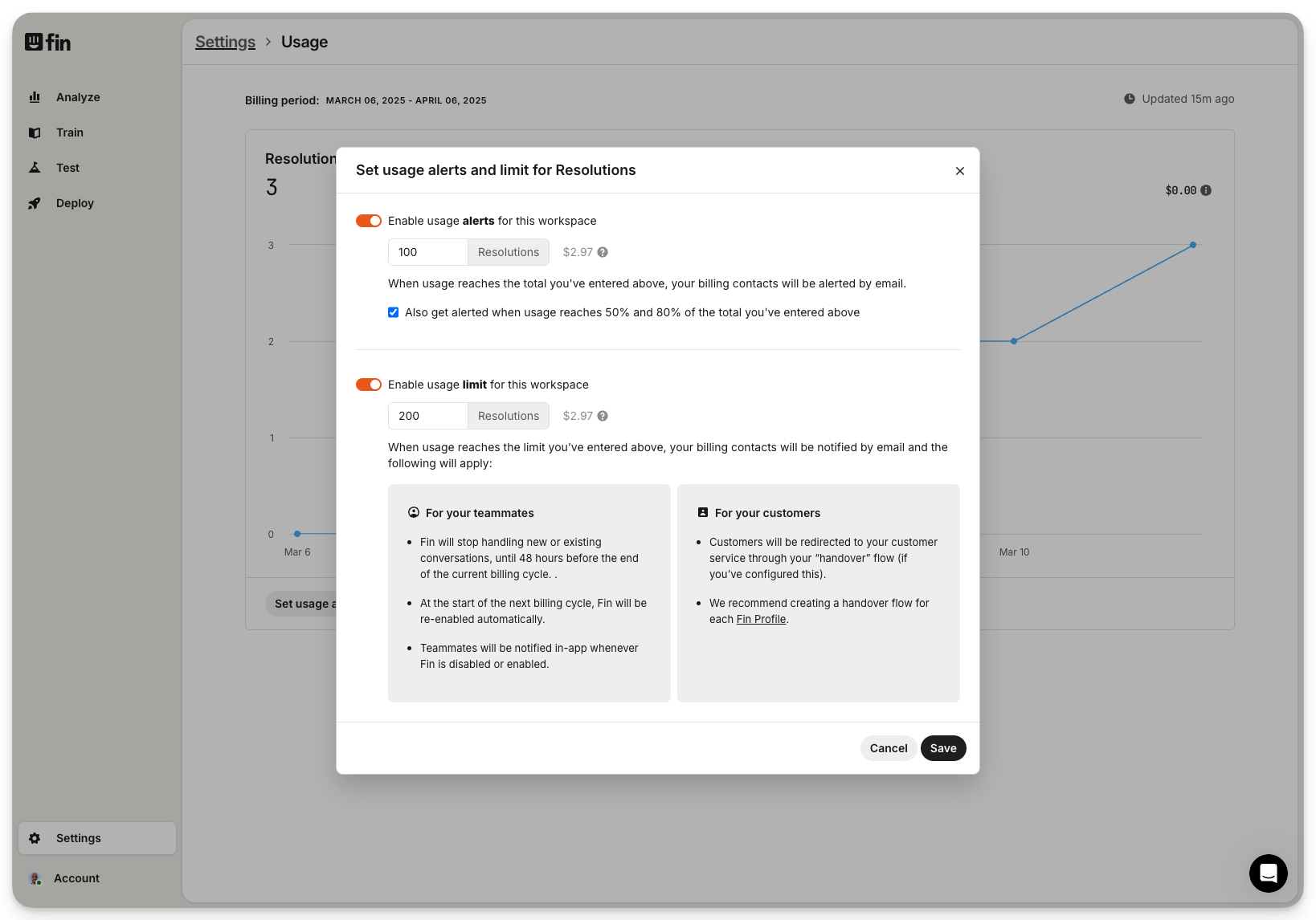 Setting usage limits