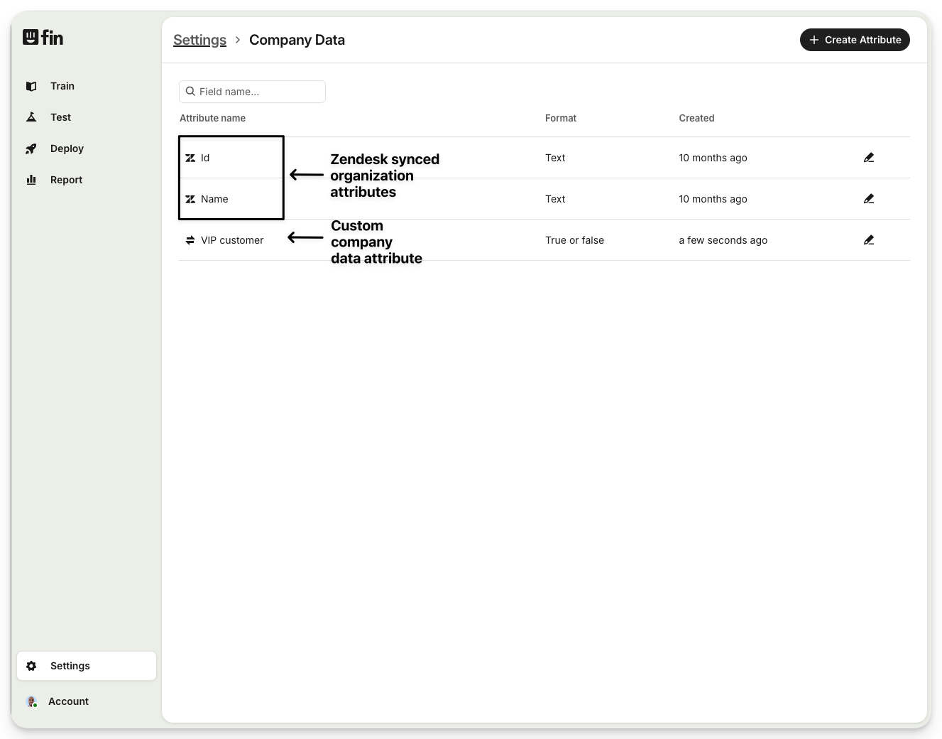 You will see the organization attributes that were synced from Zendesk (indicated via the Zendesk icon).