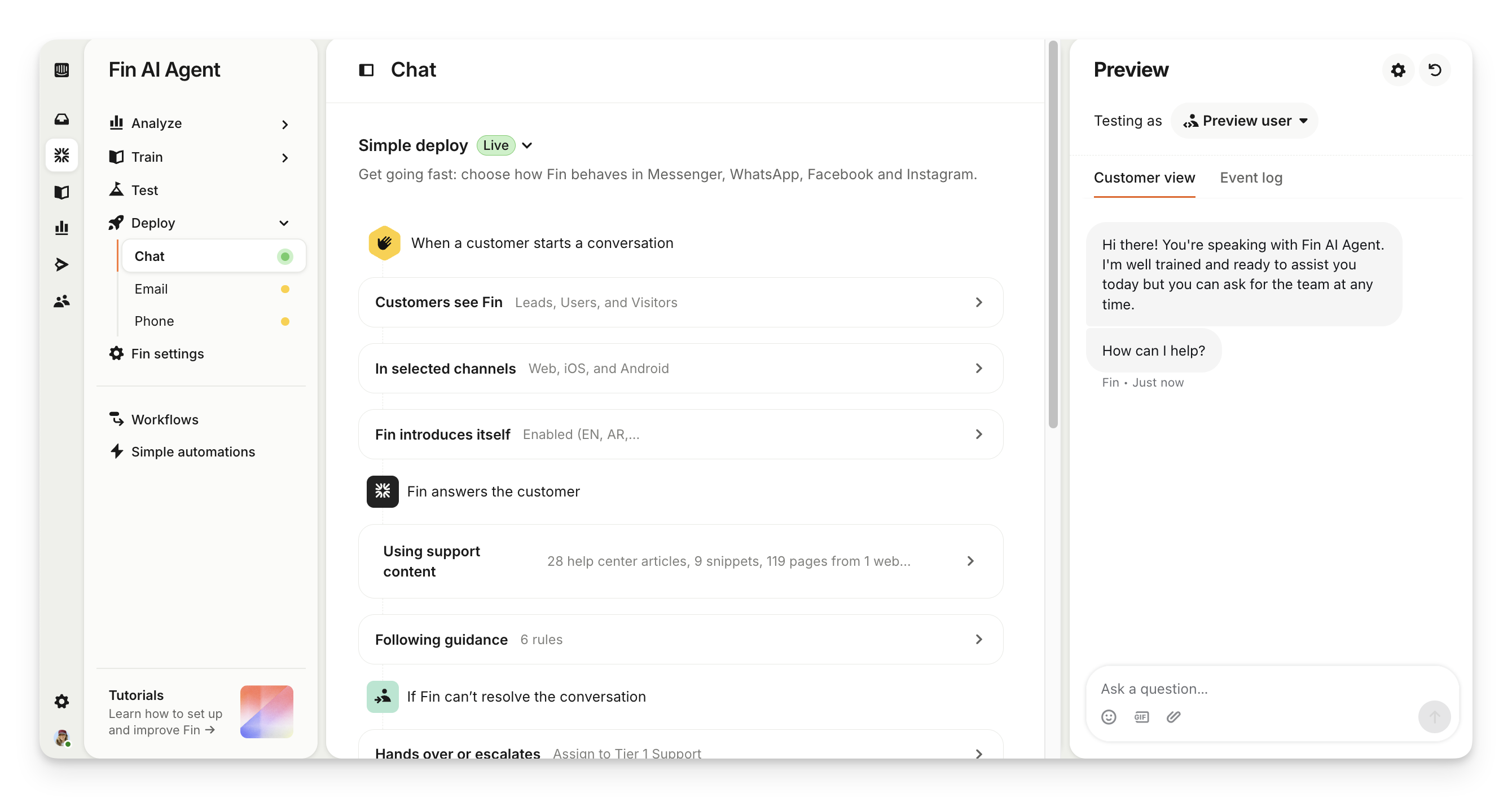 Every channel you deploy Sweo to has a workflow, which defines the experience that your end-users go through. Using workflows, you can use your data in several ways...