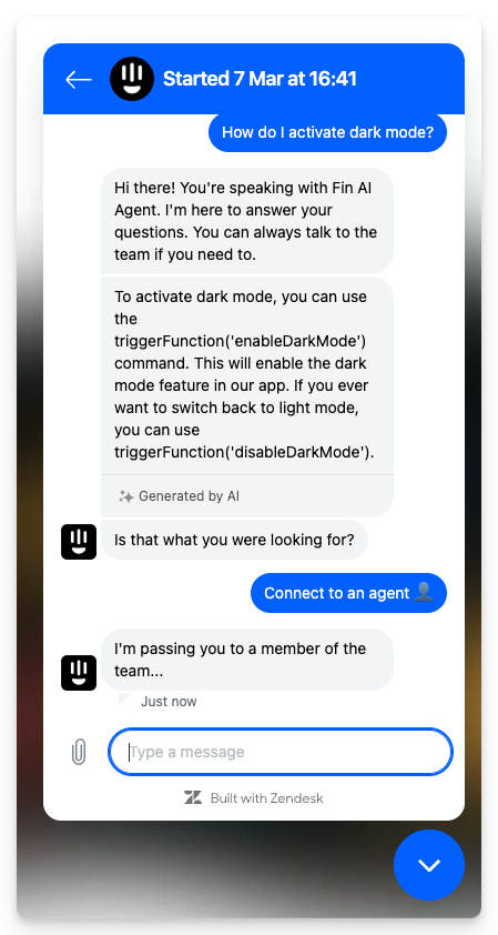 Hand off to Zendesk agent