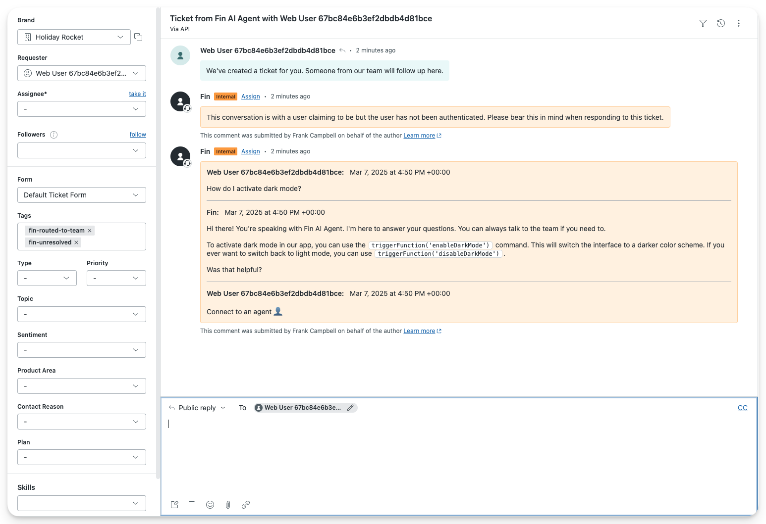 Your team's experience A ticket gets created in Zendesk, that an agent can pick up when they're ready. |