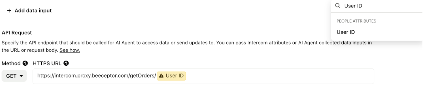 If you want, you can specify if Sweo should collect any data before using this data connector. This can be helpful in cases where you need to make sure data exists before the data connector is run. For example, you might want to ask the customer for their account number if this is not stored on their user profile in Intercom.