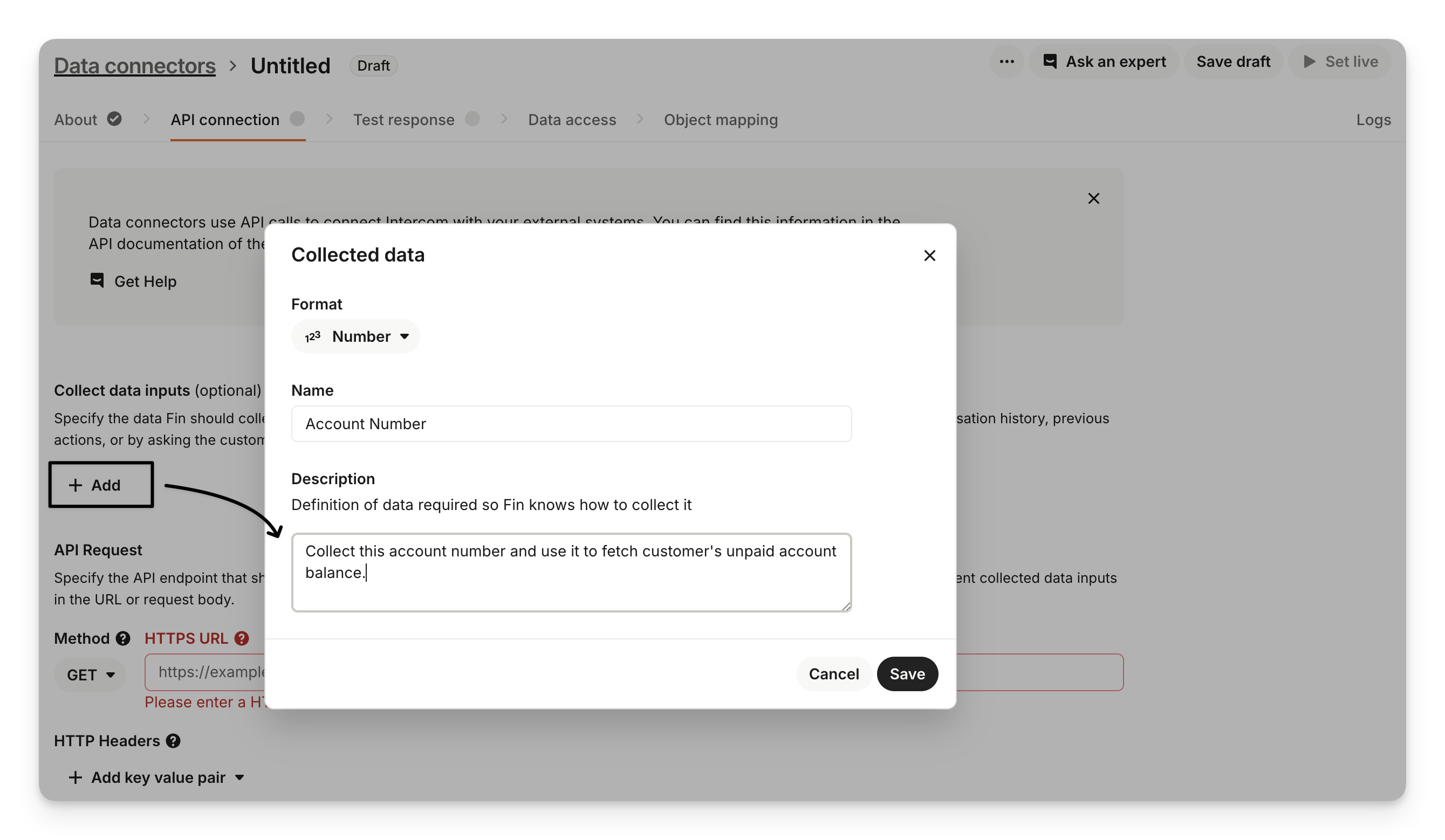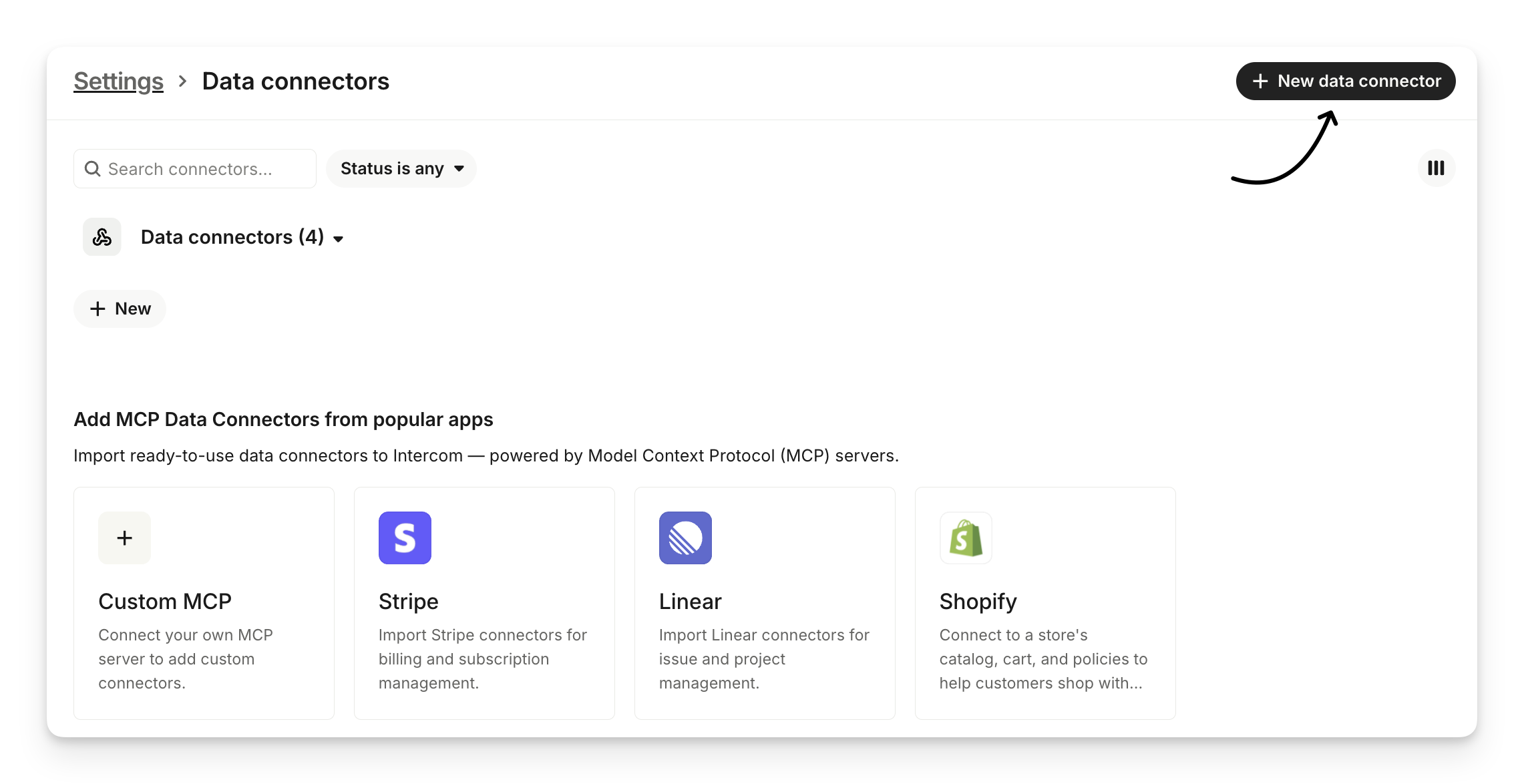 • You can connect data connectors to APIs that return XML. Intercom will automatically convert XML responses to JSON, so you don’t need to do any manual conversion or use a third-party tool. This means you can connect to a wider range of external systems, even if they don’t support JSON natively.