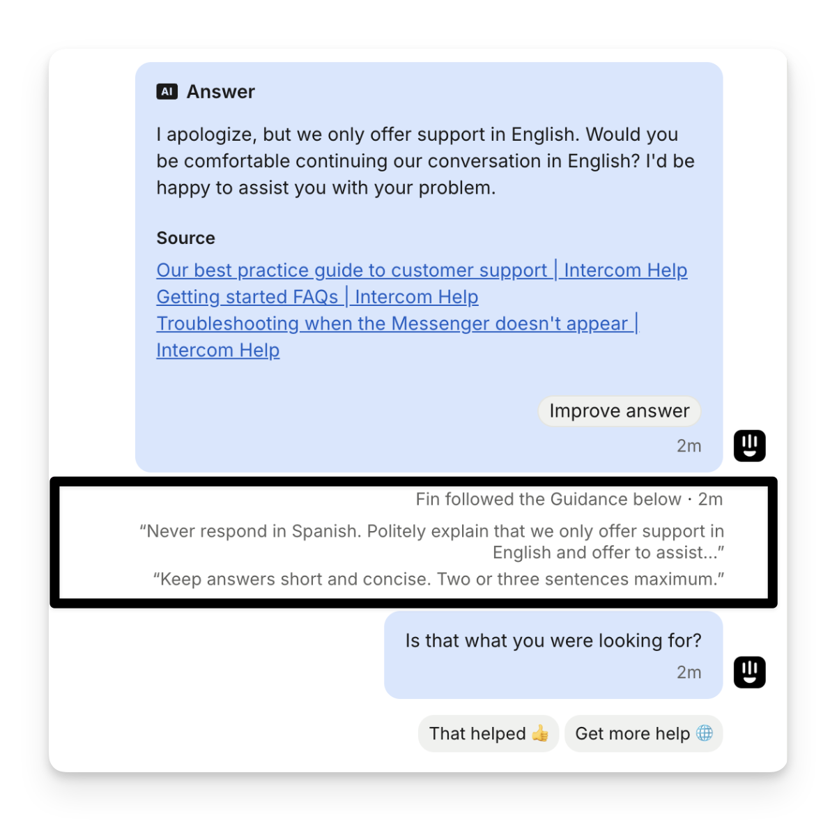 The customer doesn’t request more help after the last AI Answer.