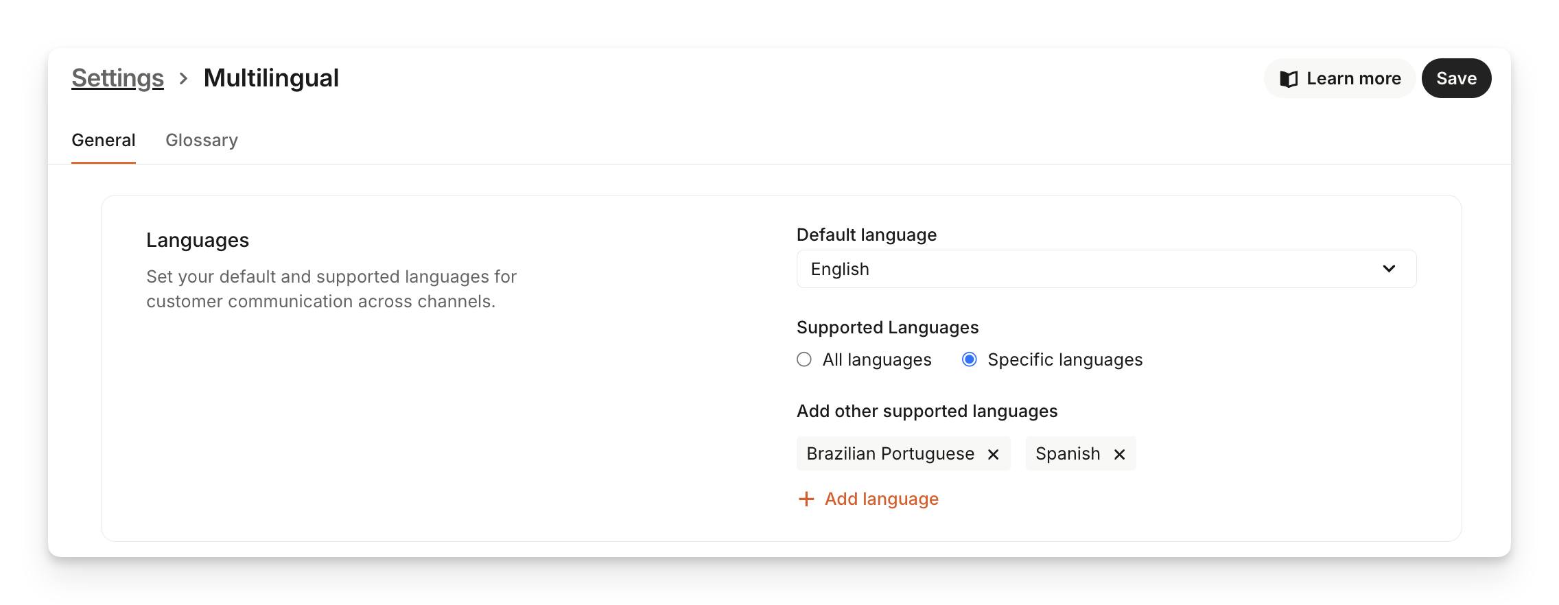 Go to Settings > Multilingual to select the languages you want Sweo to support.