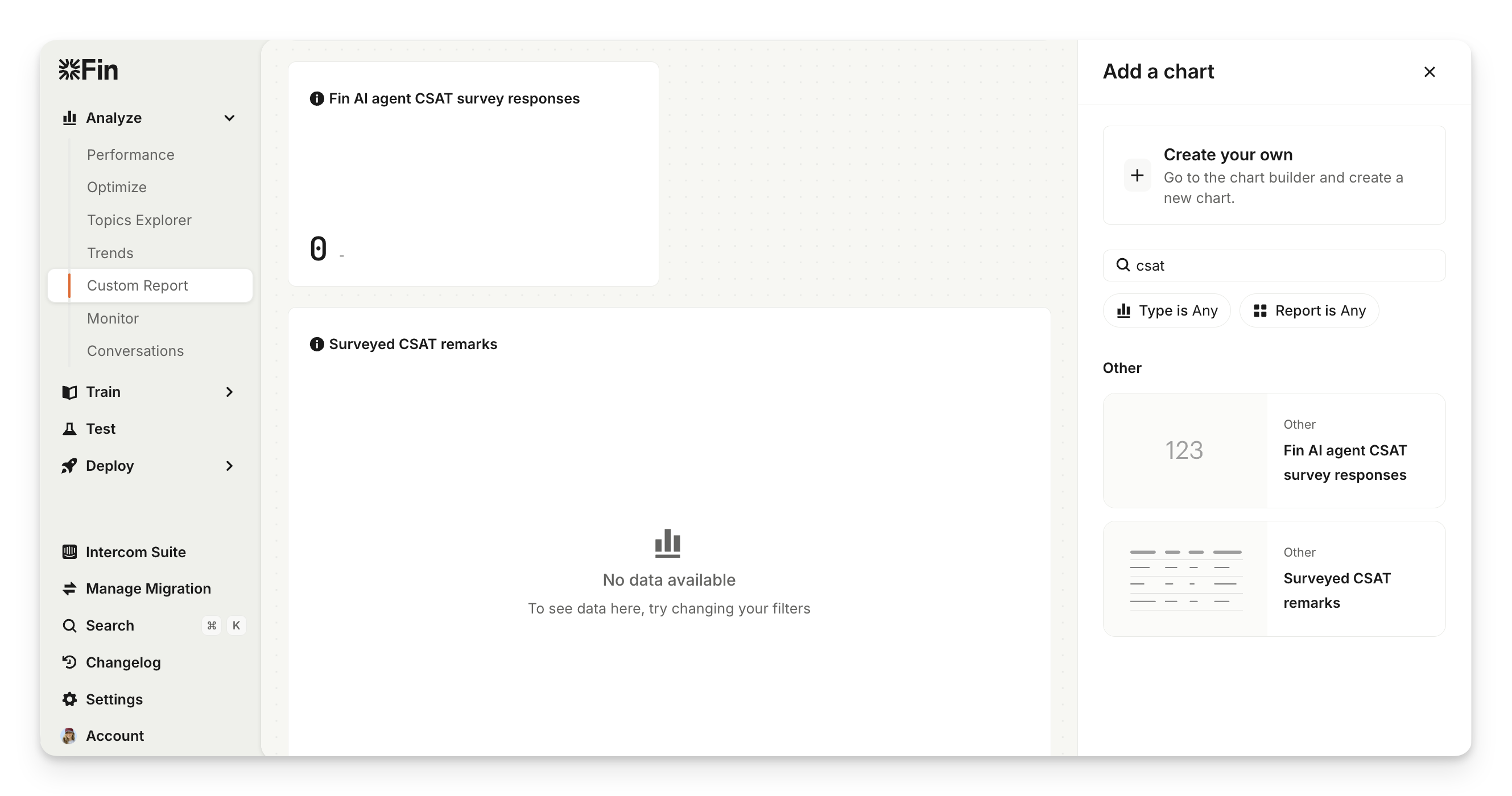 You can see Sweo CSAT performance when using the Custom Report charts: