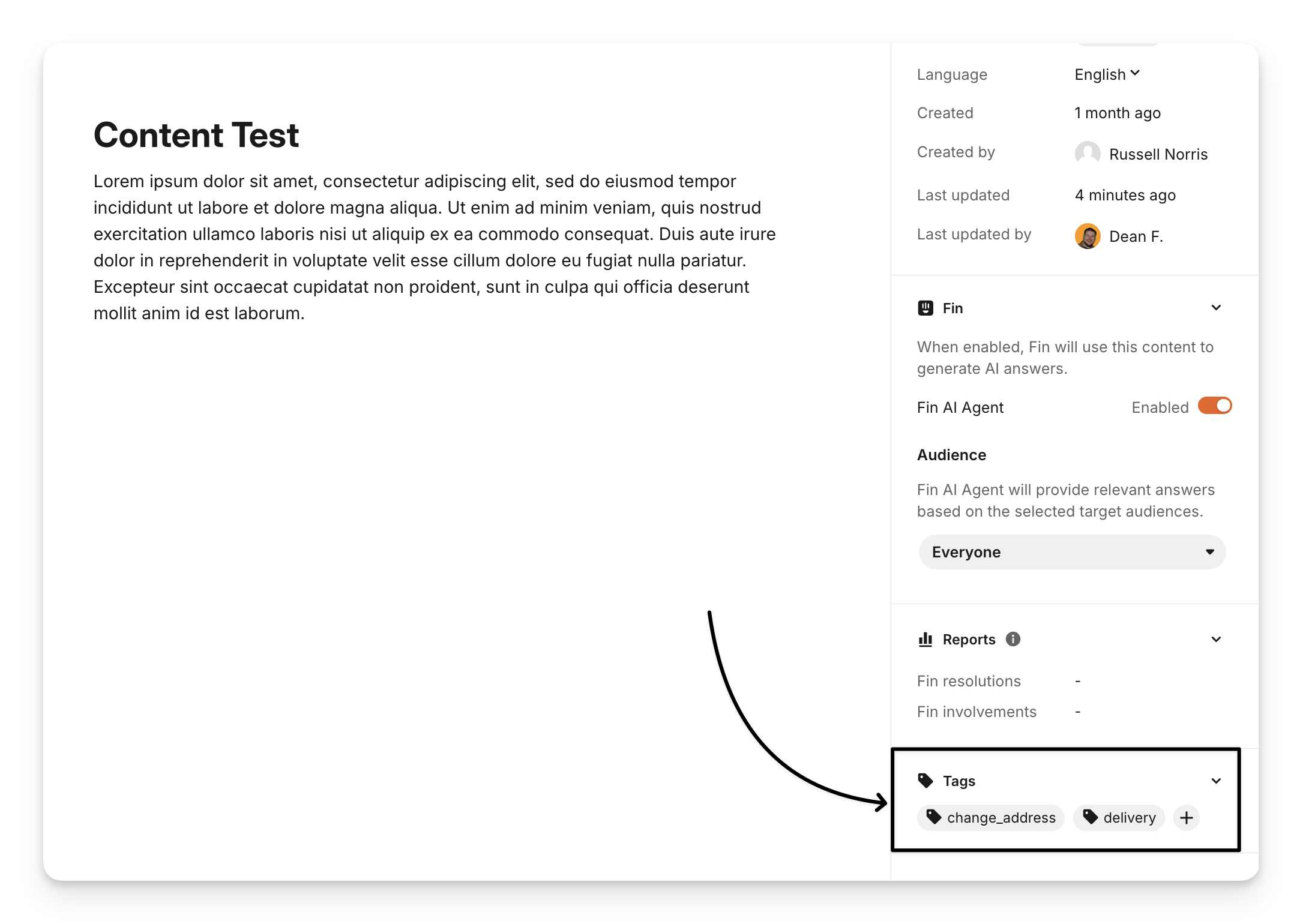 Your customers won’t see the article tags, only you and your teammates can see them.