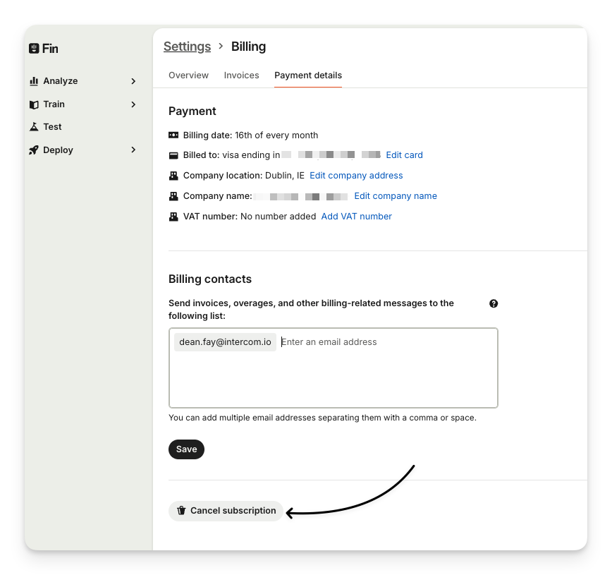 Once cancelled, you’ll retain access to Intercom until the end of your current billing period and you won’t be billed for this subscription in the next period.