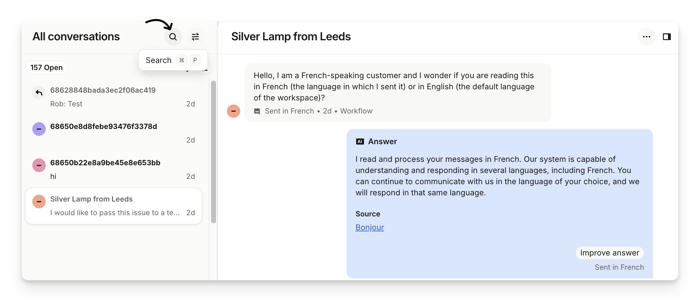 Tip: Enable AI Inbox translations to view multilingual conversations in your default language.