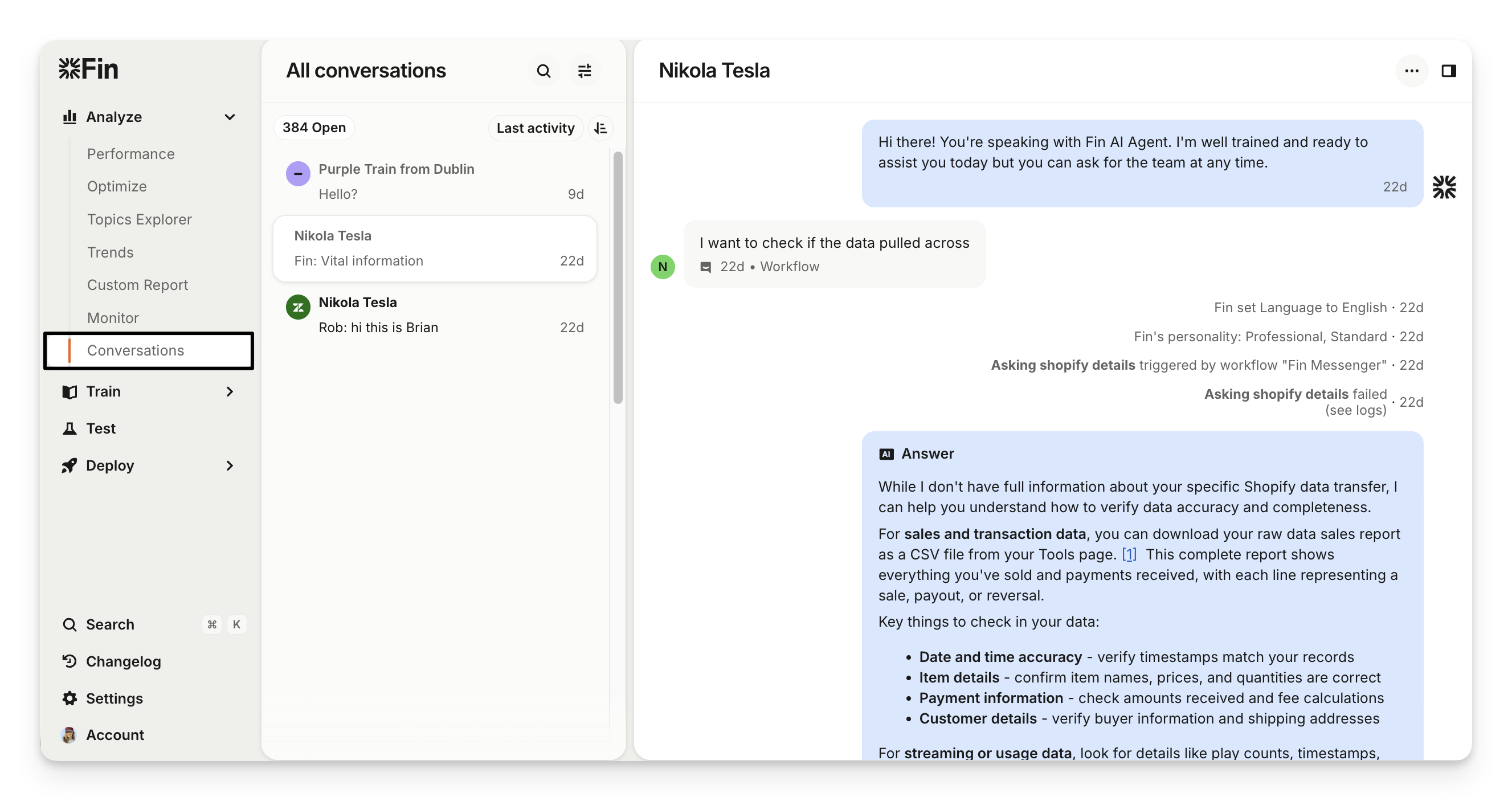 To view Sweo's conversations, go to Analyze > Conversations.