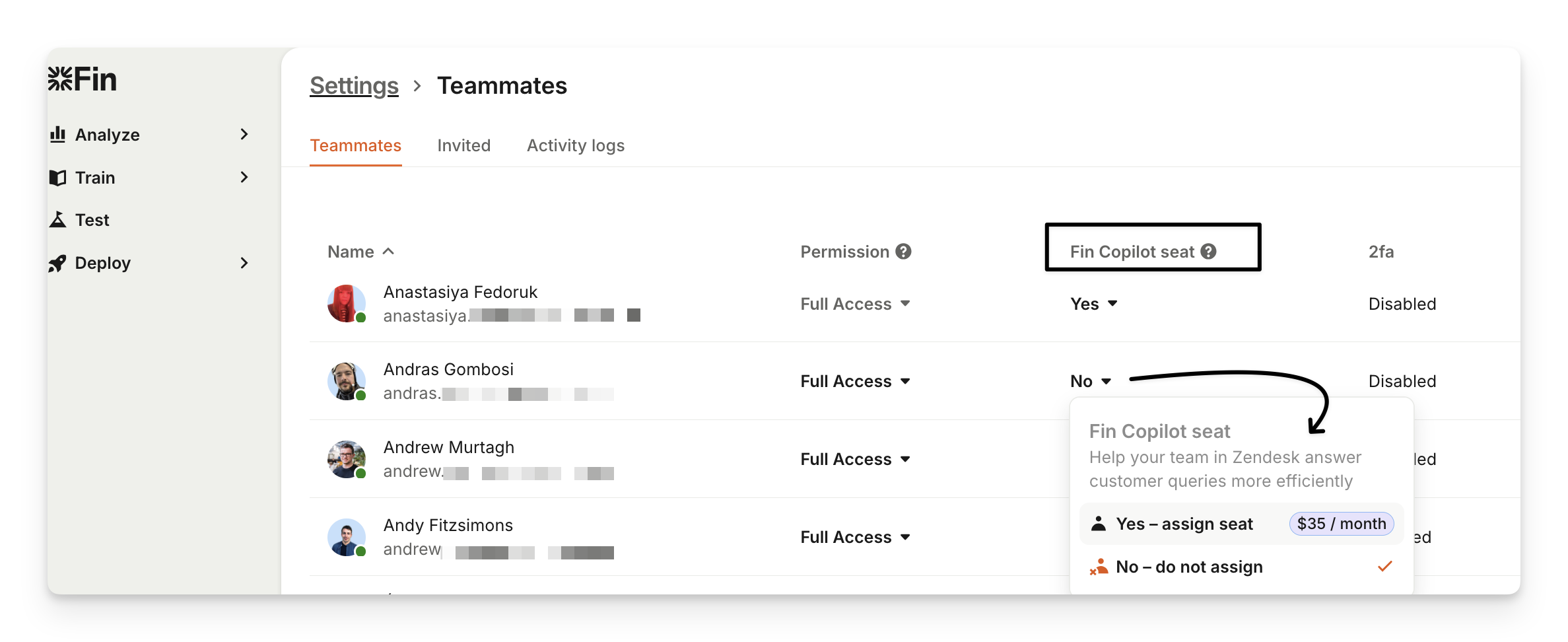 Copilot can be assigned to any teammate in your Sweo workspace as a flexible per seat add-on. From Settings > Teammates you can choose which teammates to assign a Copilot seat, or switch it off for a teammate.