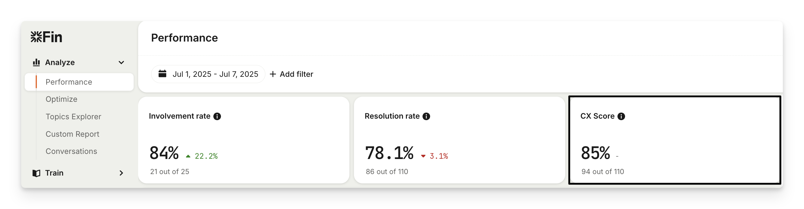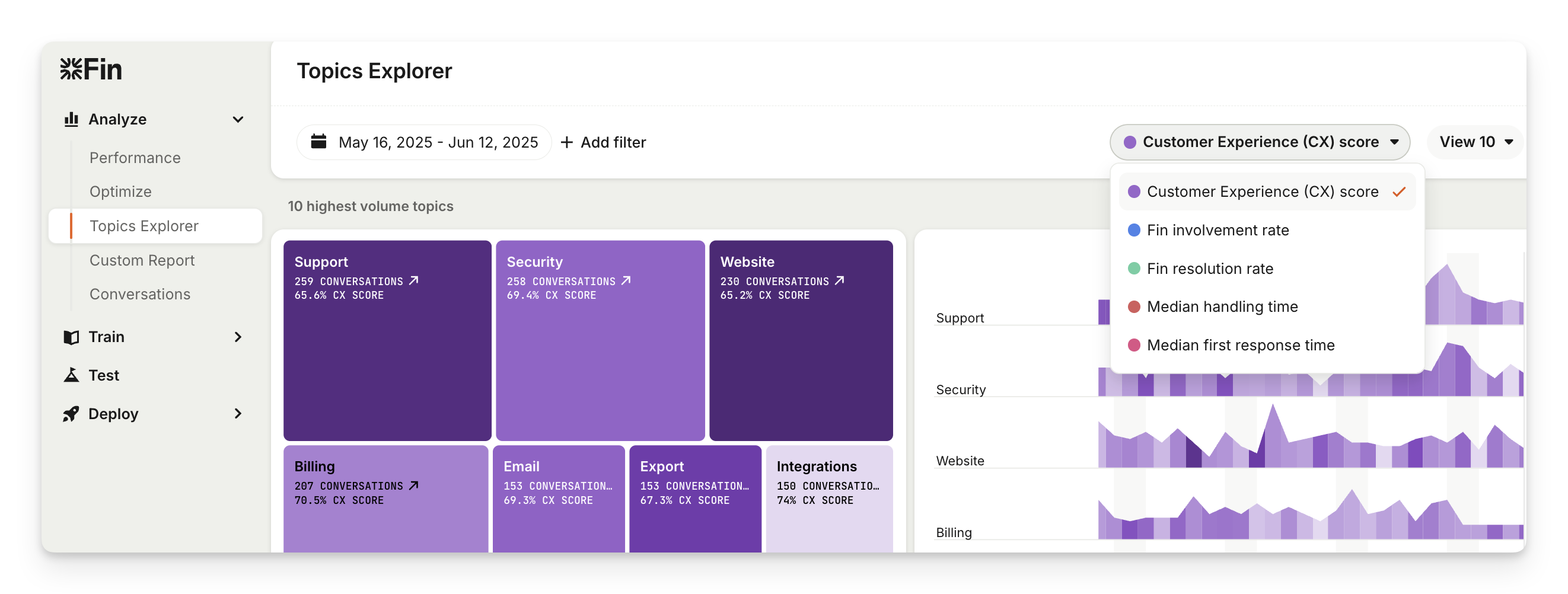 From Analyze > Topics Explorer you can track performance by topic. Each topic includes CX Score so you can see which issues are handled well and which need attention.