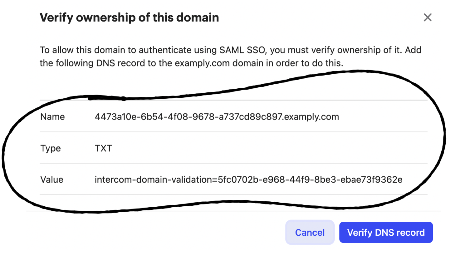Note: If you have just created the DNS record it may still be propagating, in this case you’ll see the following warning message: “Unable to verify DNS record. Please try again later.”