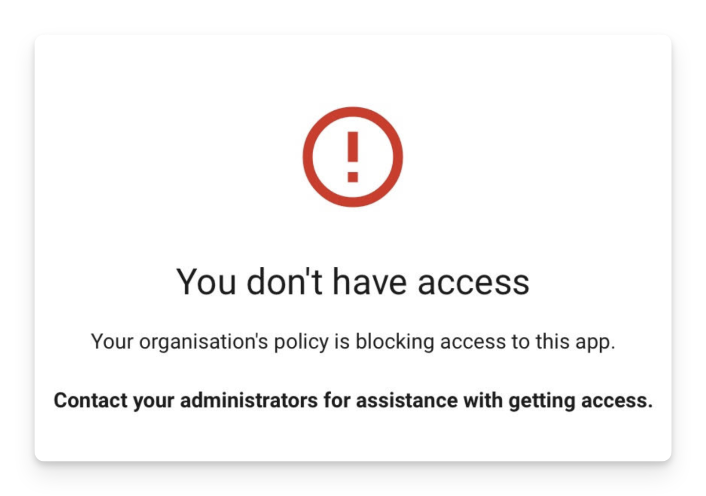 If you are using Google Workspace as your SSO provider and you see an error message stating that you don’t have access (similar to the image below), you can turn on remediation messages in order to further understand the reason for the error.