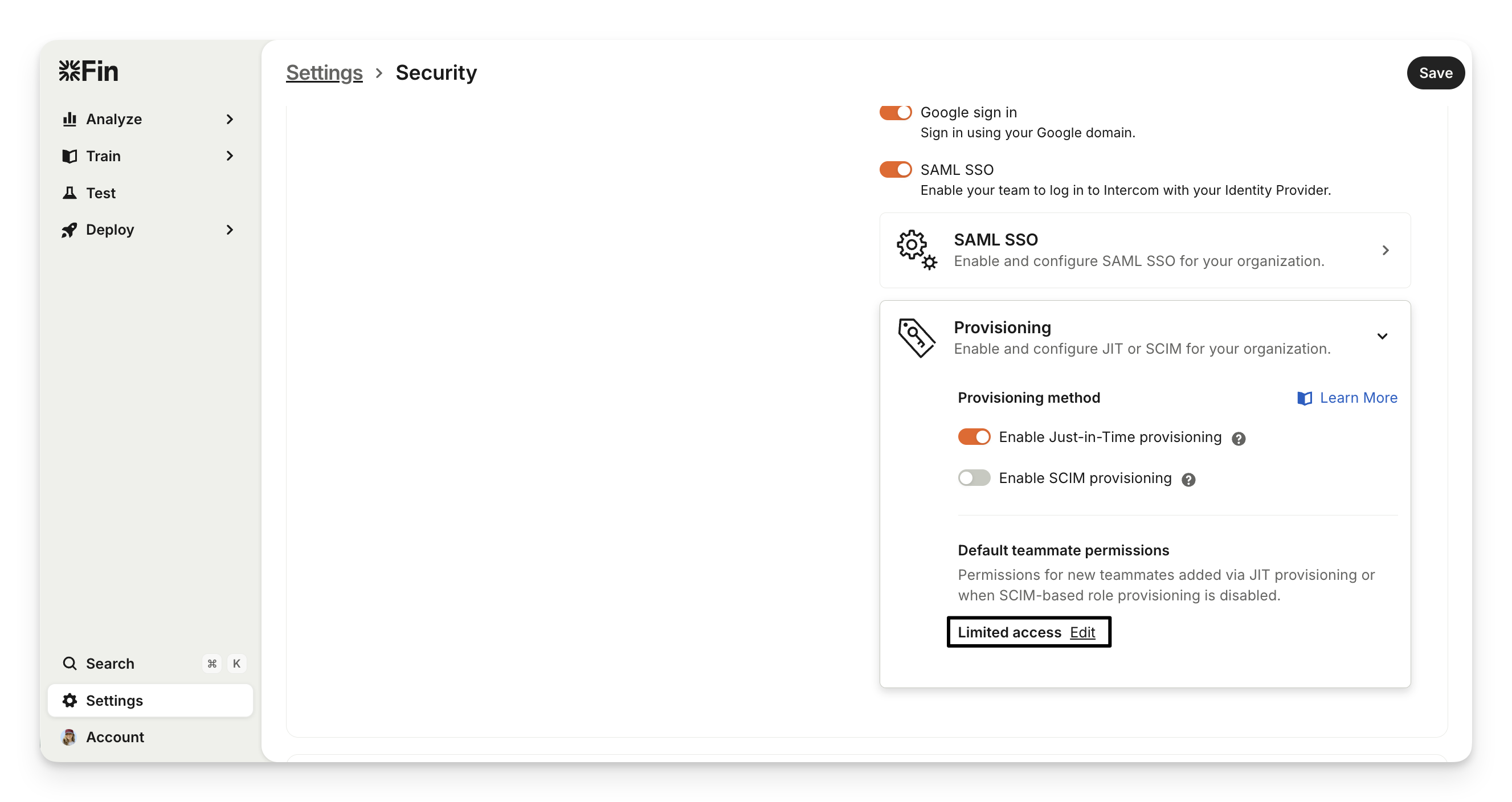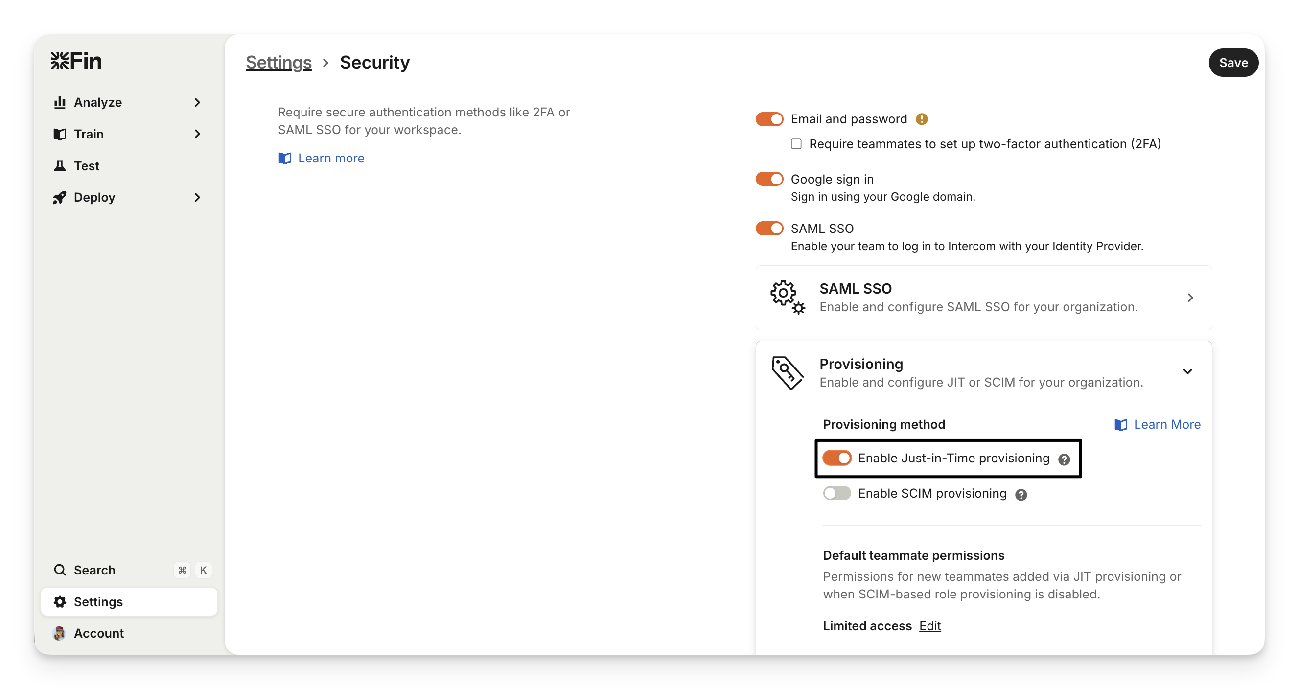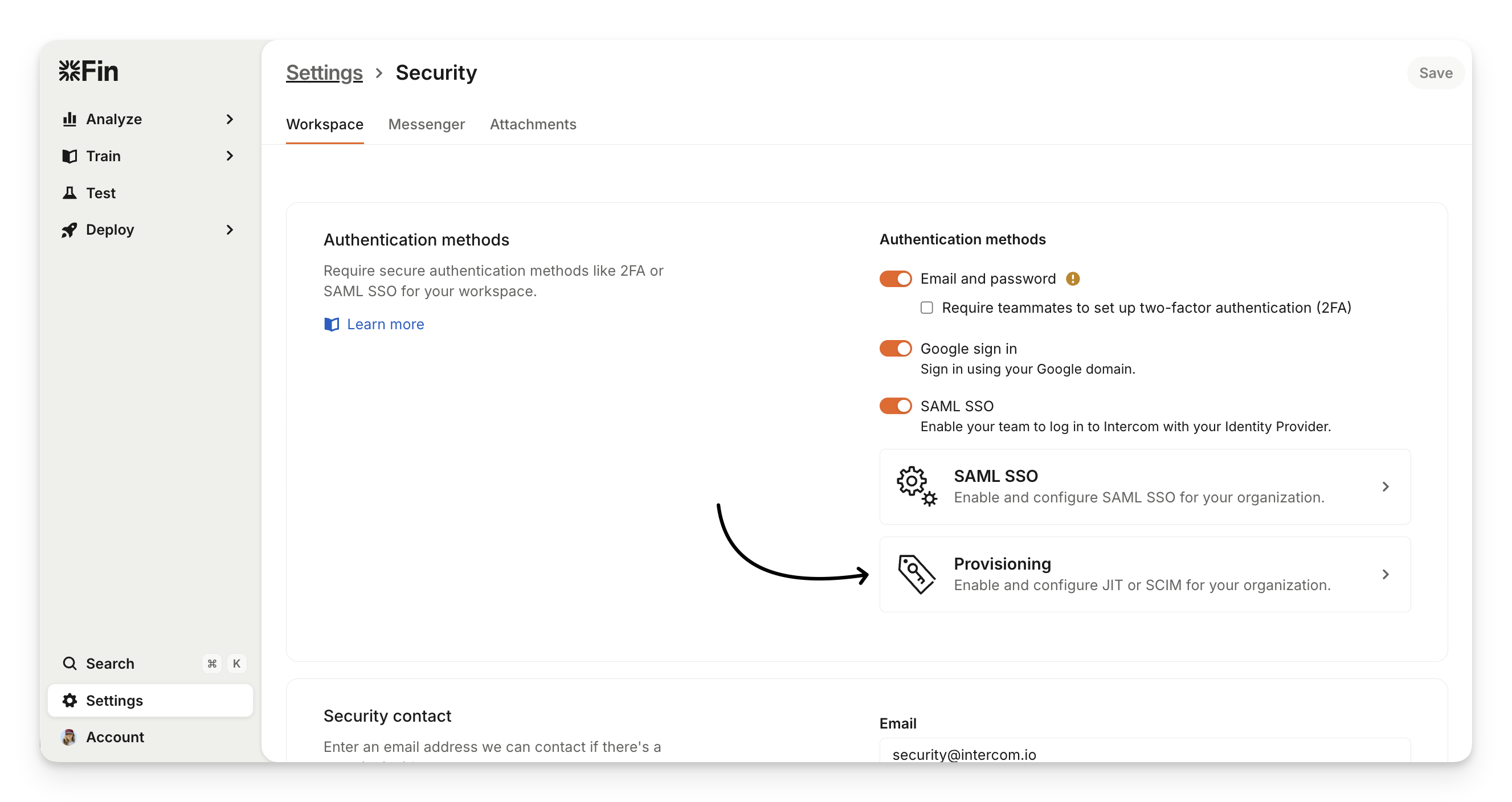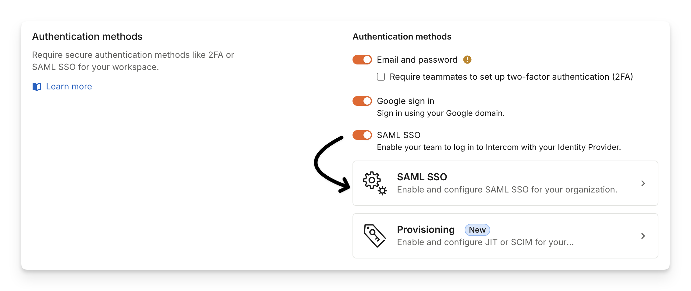To enable this, go to Settings > Security, make sure SAML SSO is toggled on, and click on Provisioning.