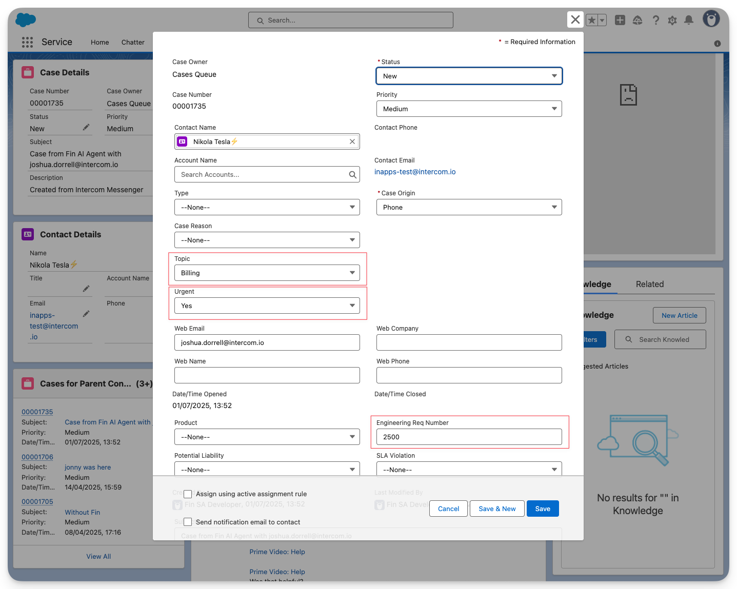 Note: You might need to hit Edit in the top right to see these fields unless you've adjusted your default case layout to display them.