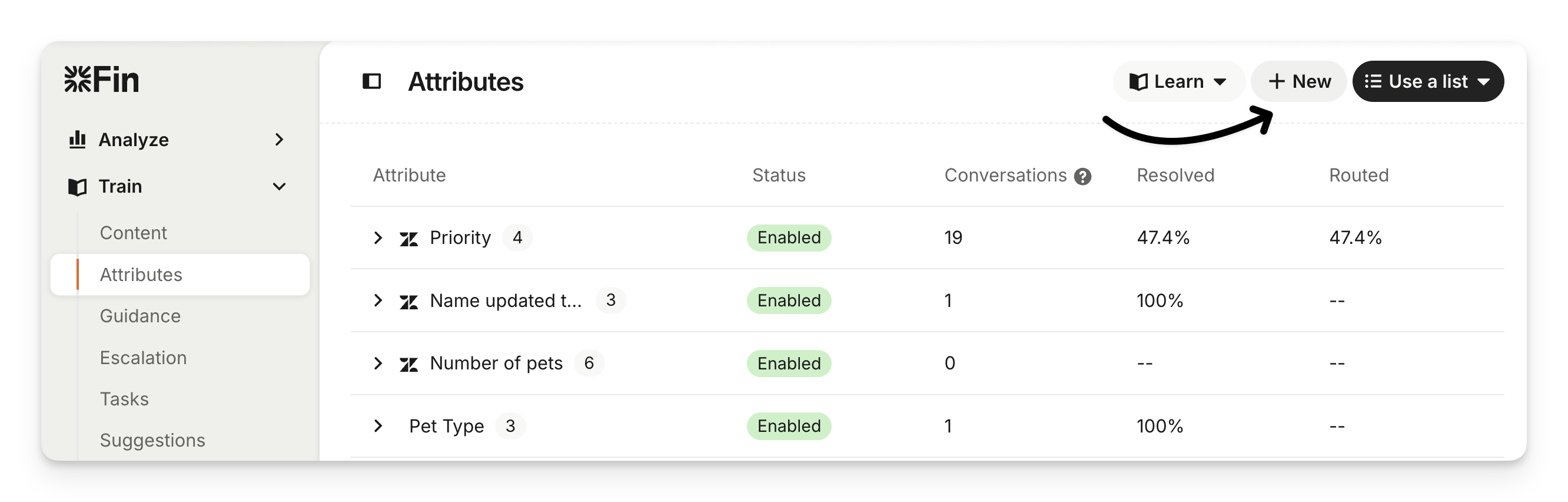 Once converted, the attribute will appear under Train > Attributes.