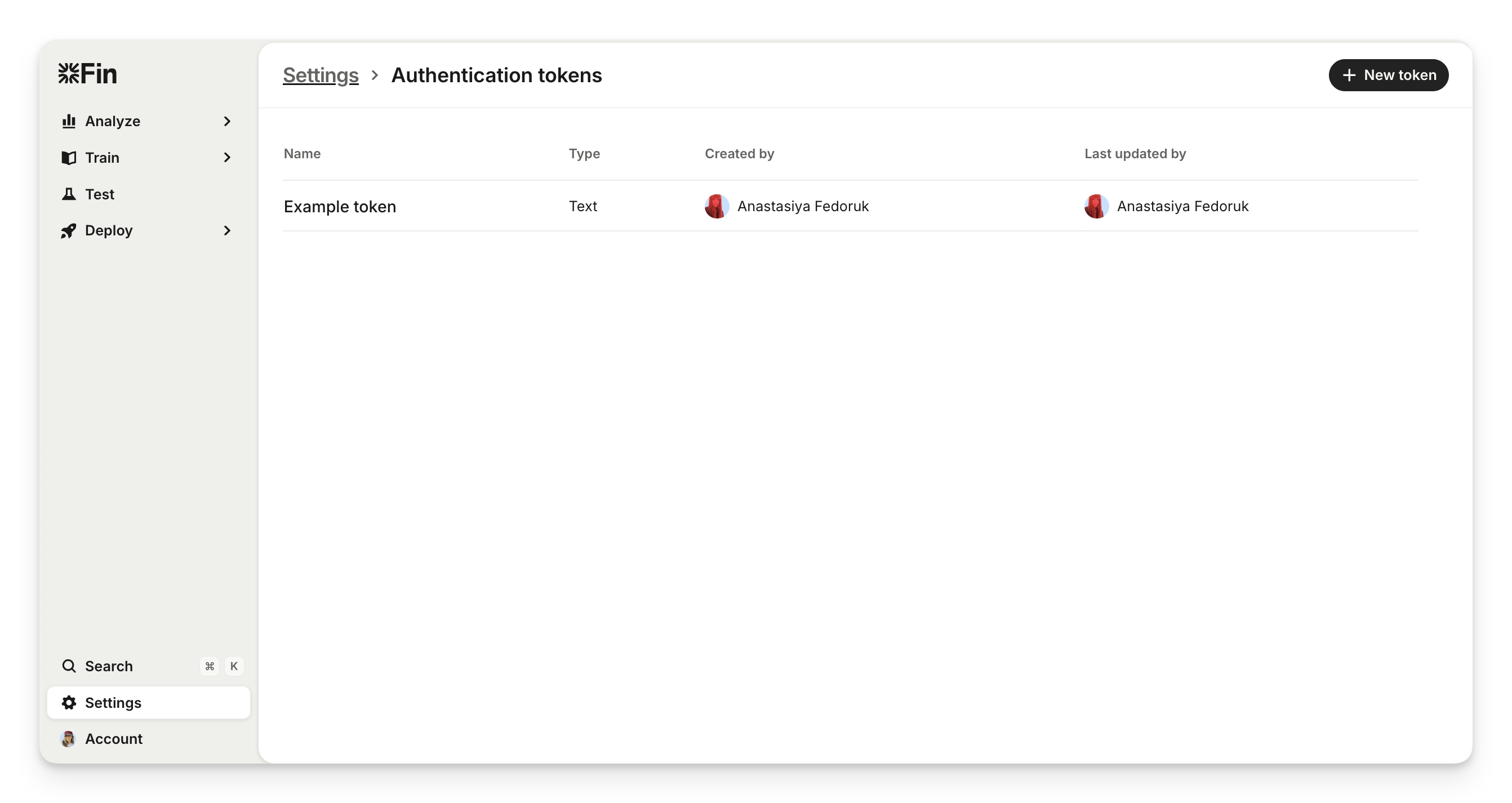 Click on New token.