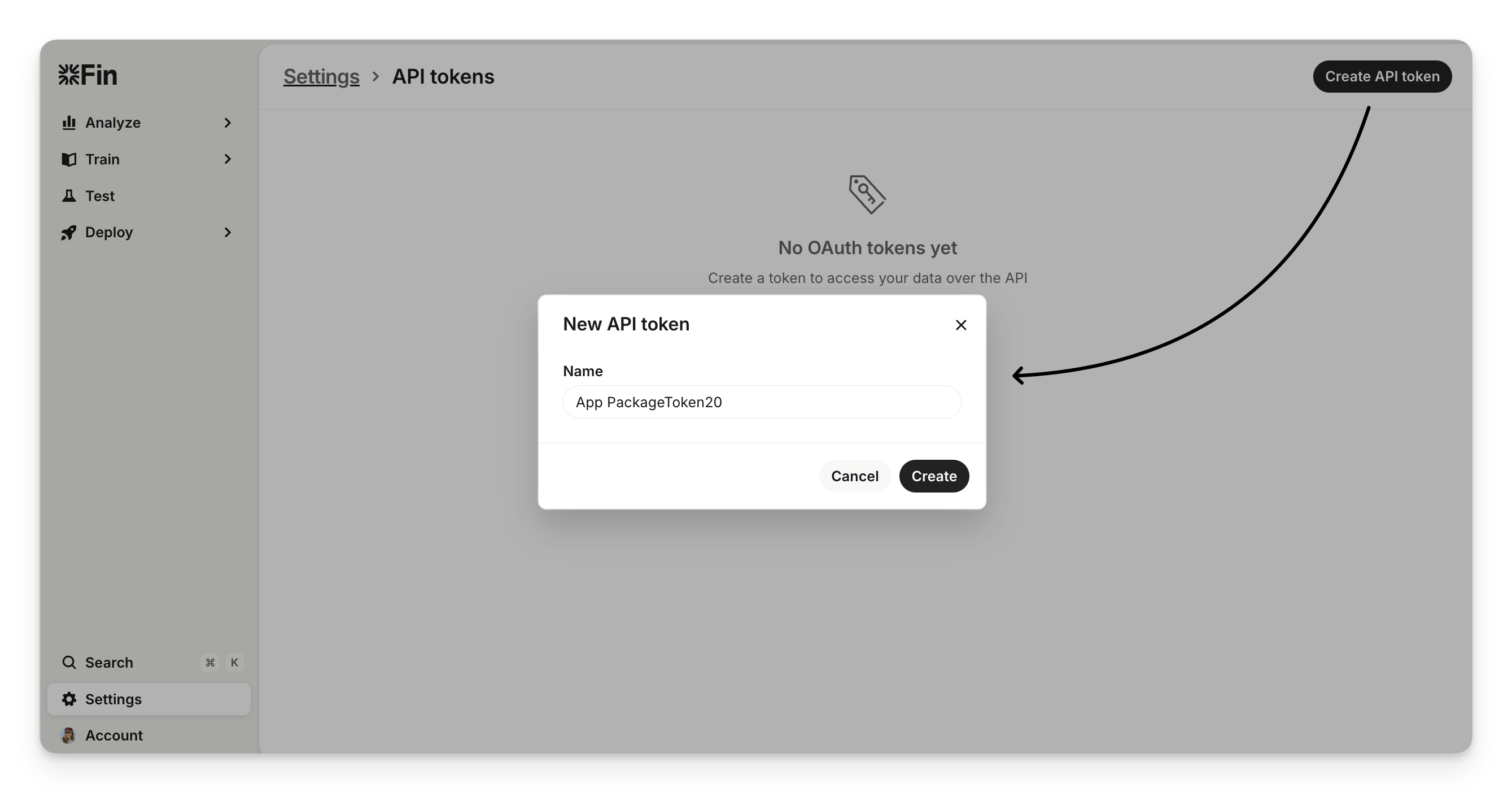 Enter a name for your API token and click Create.