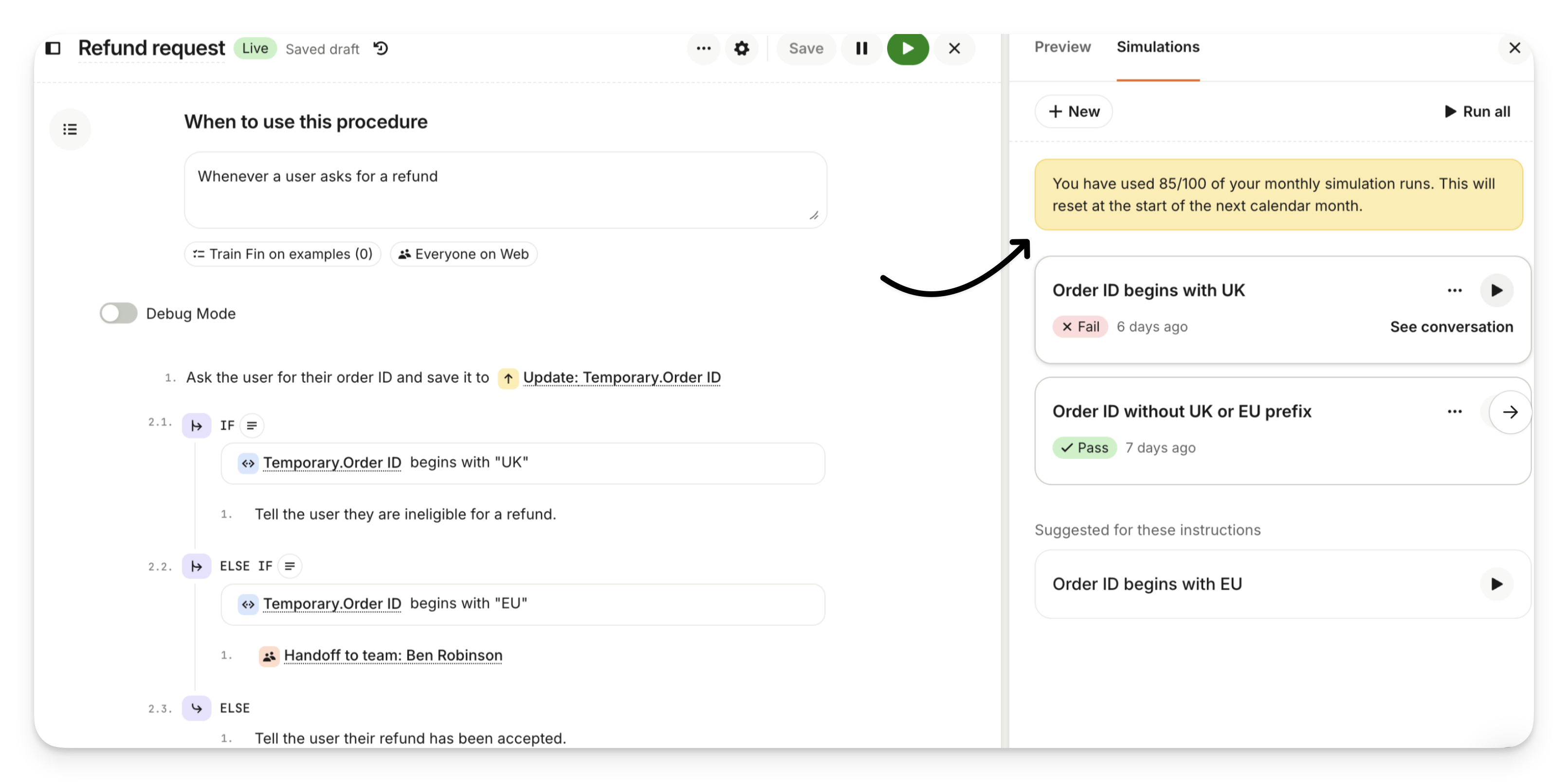 Simulation allowance is based on your workspace’s conversation volume.