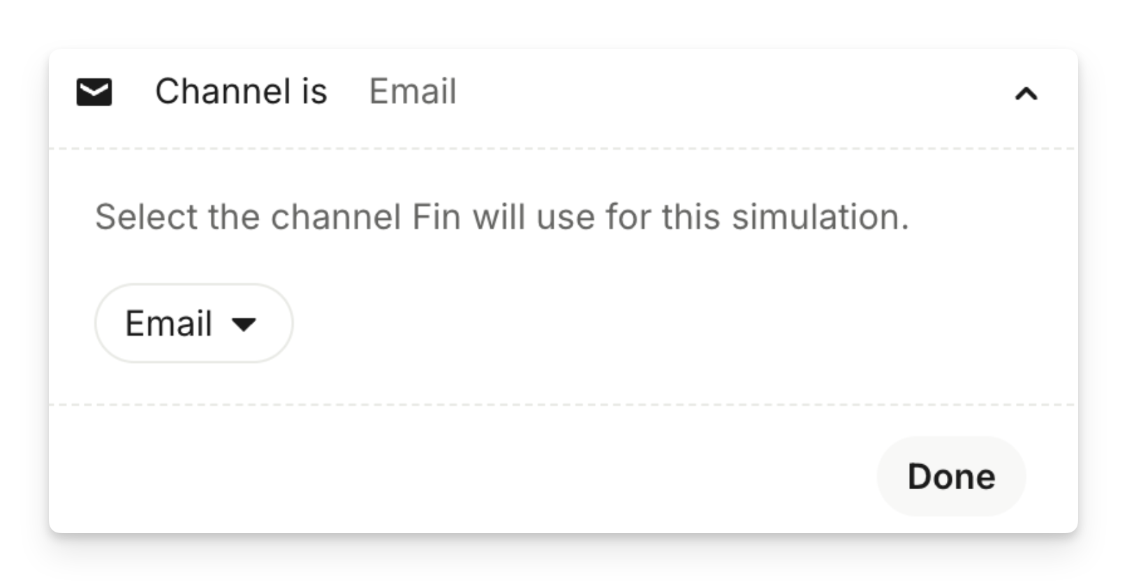 Simulations allow you to select the channel Sweo will use for this simulation, so you can test how Sweo behaves. Use the channel dropdown to switch between Messenger and Email before running your simulation.