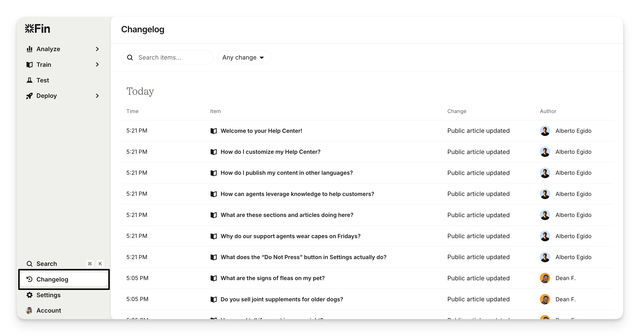 Teammate information: The changelog shows who made each change to help you understand ownership and context.