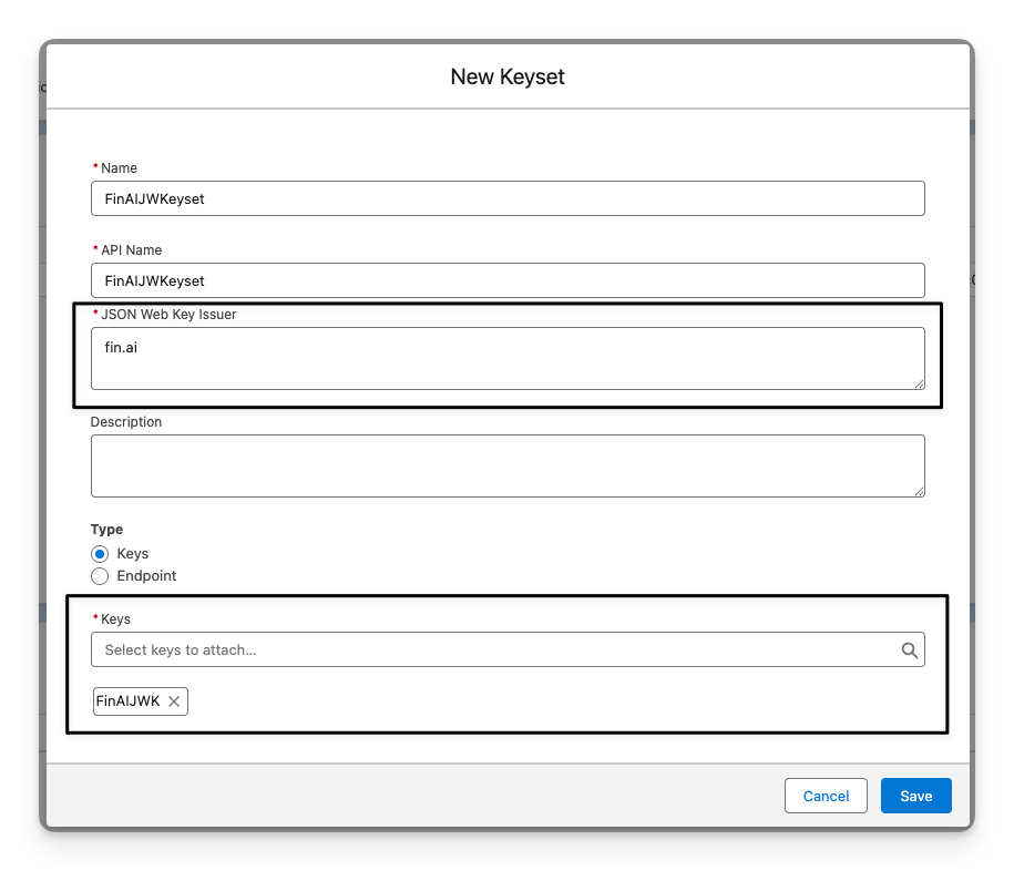 fin.ai. Select the JWK saved in step 4 and hit Save.