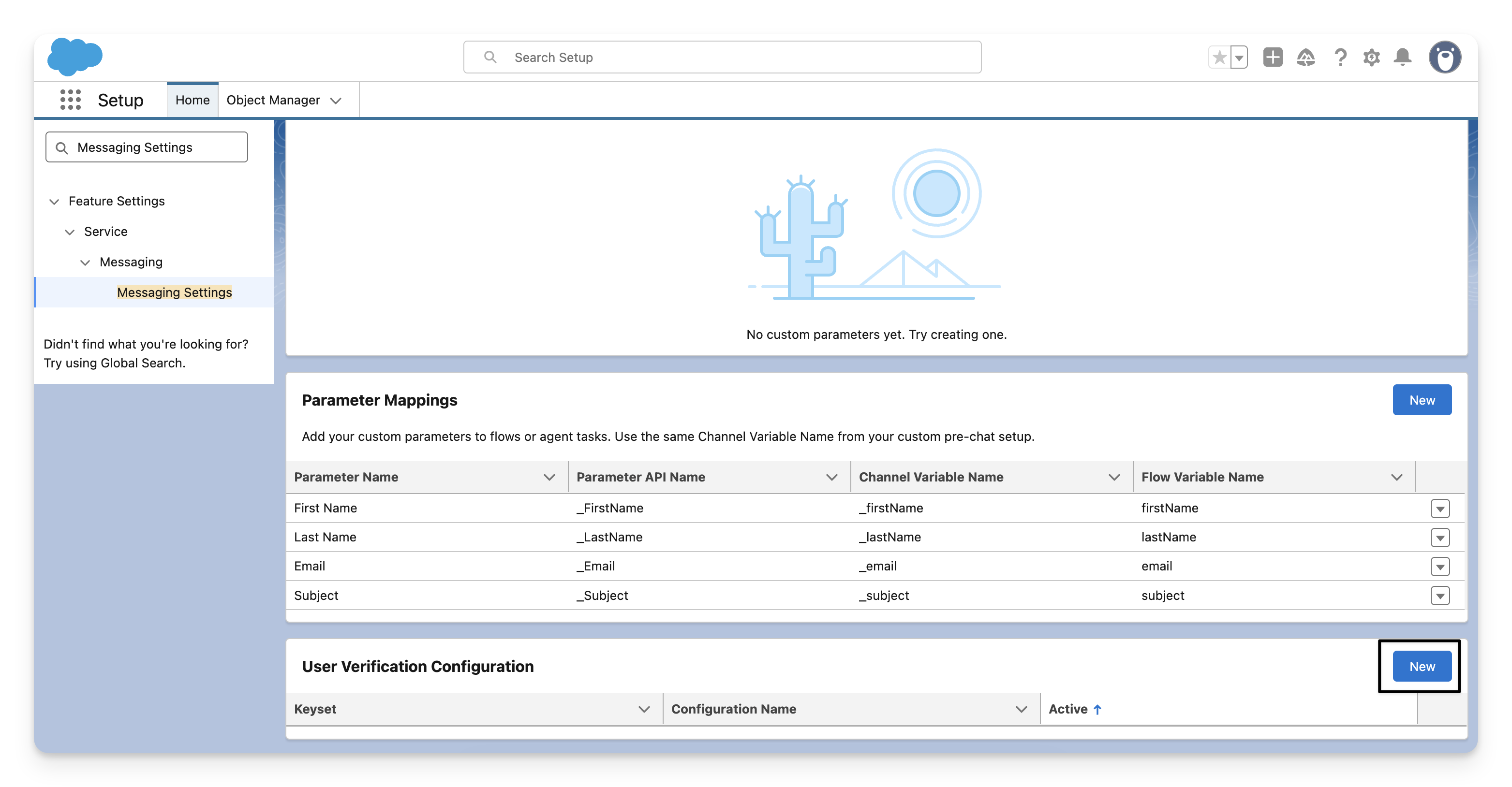 Scroll to "User Verification Configuration" and click New.