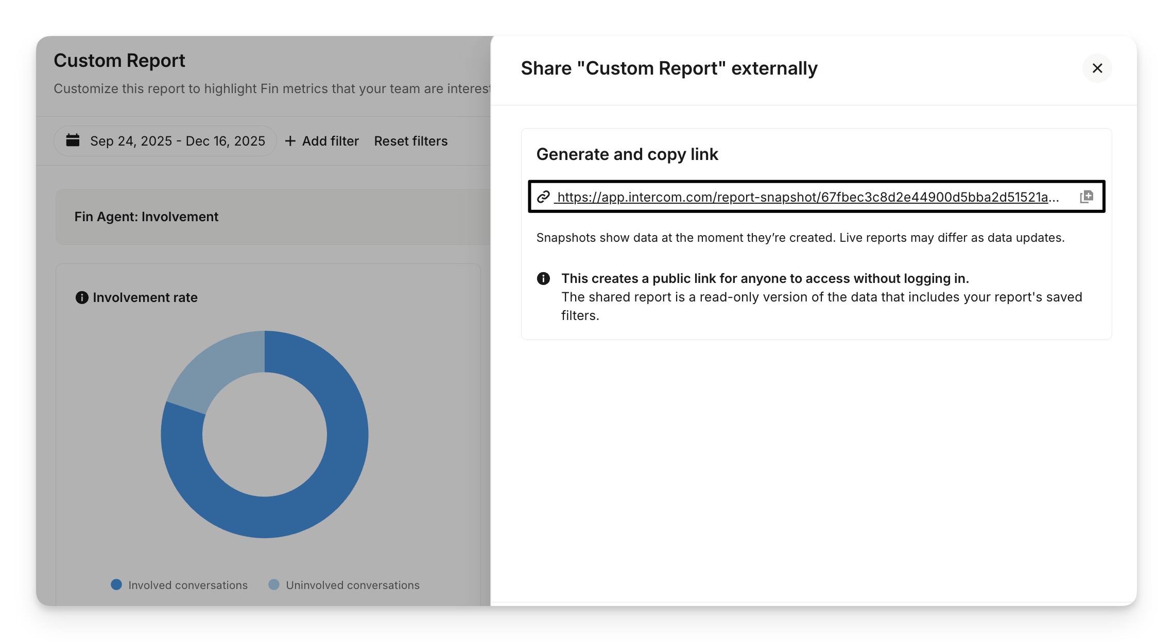 A public link to a static snapshot of your report will be created for you to copy and share.