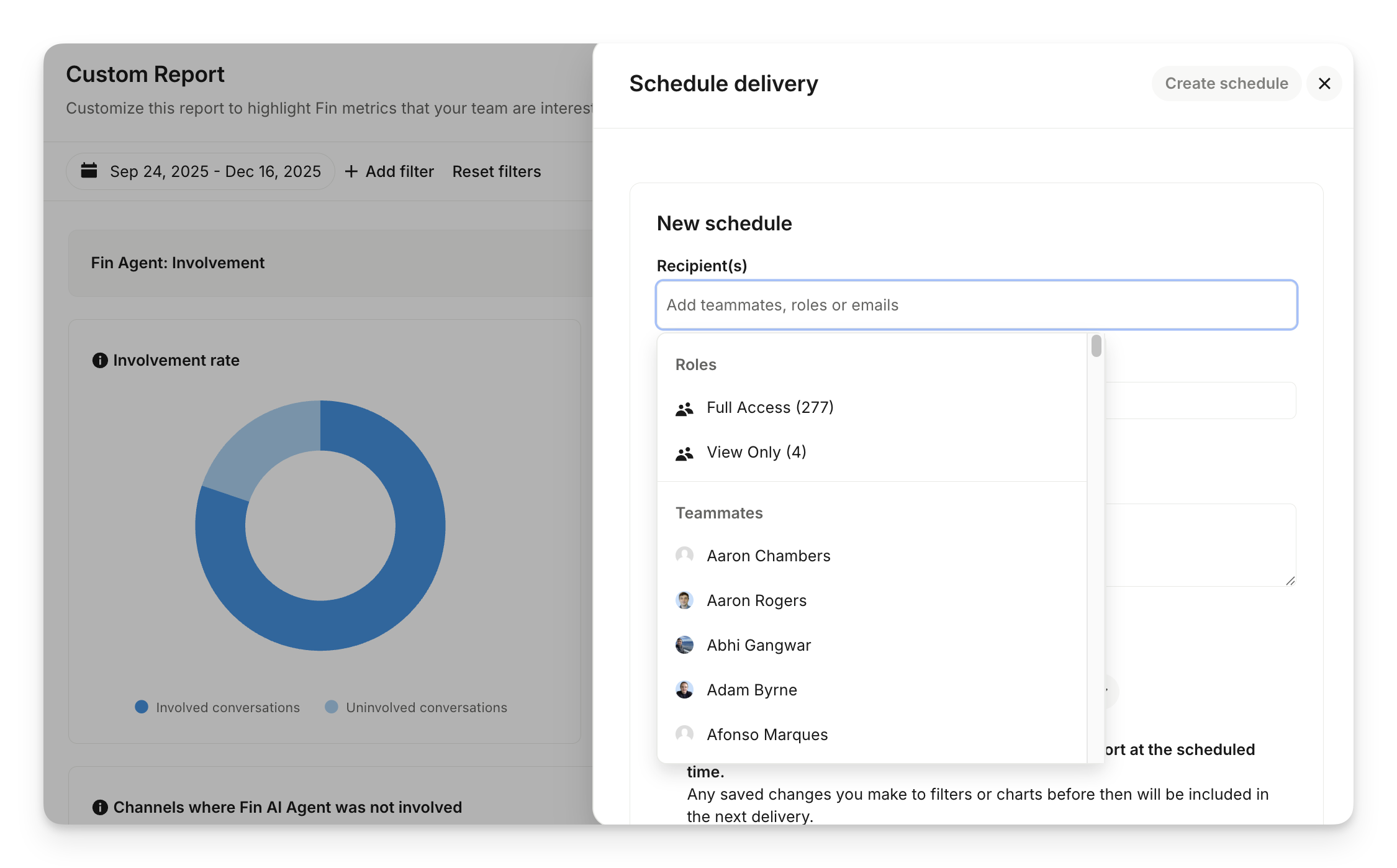 In the side drawer, you'll also see the most recent schedules that were created for that report so you can edit/delete schedules.