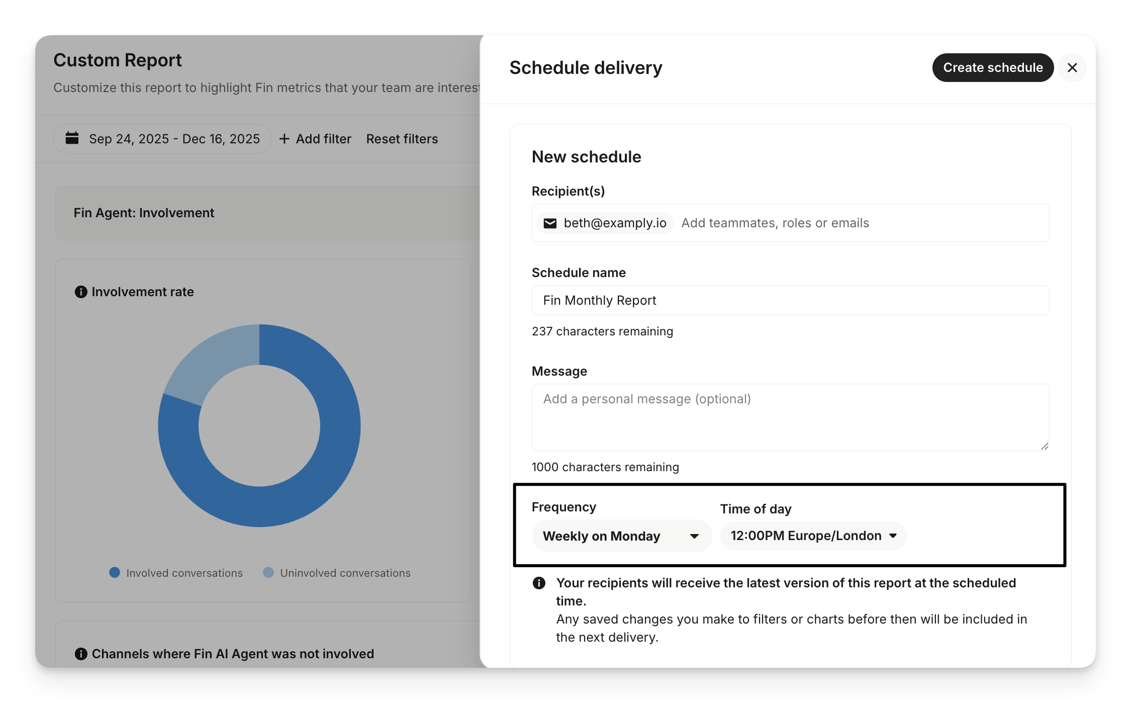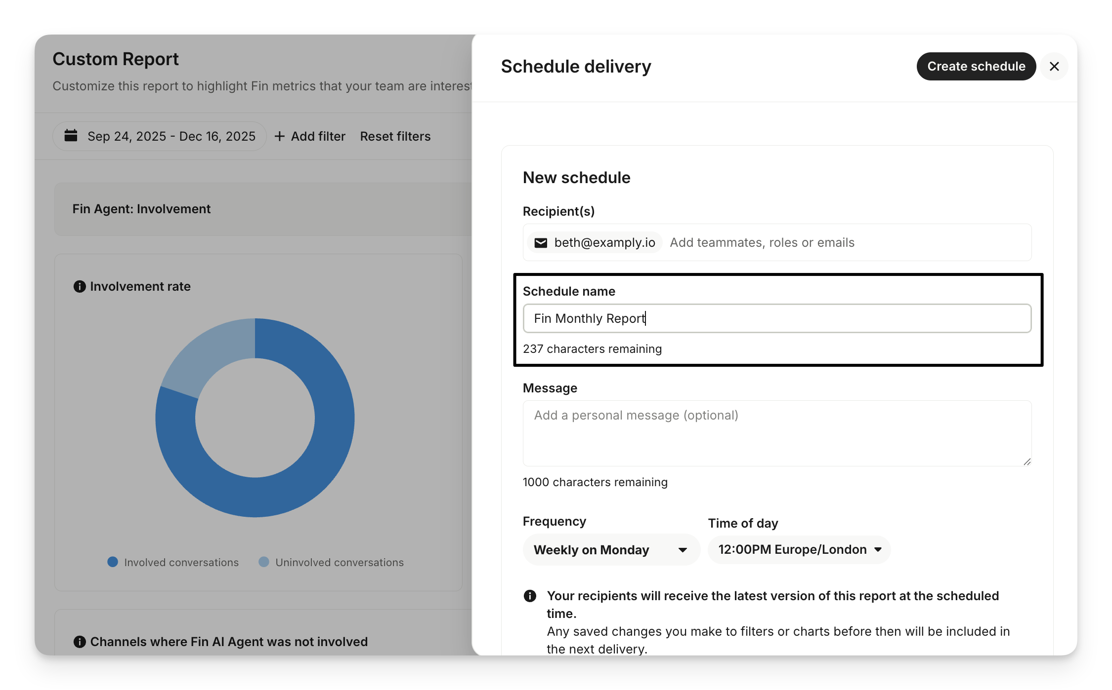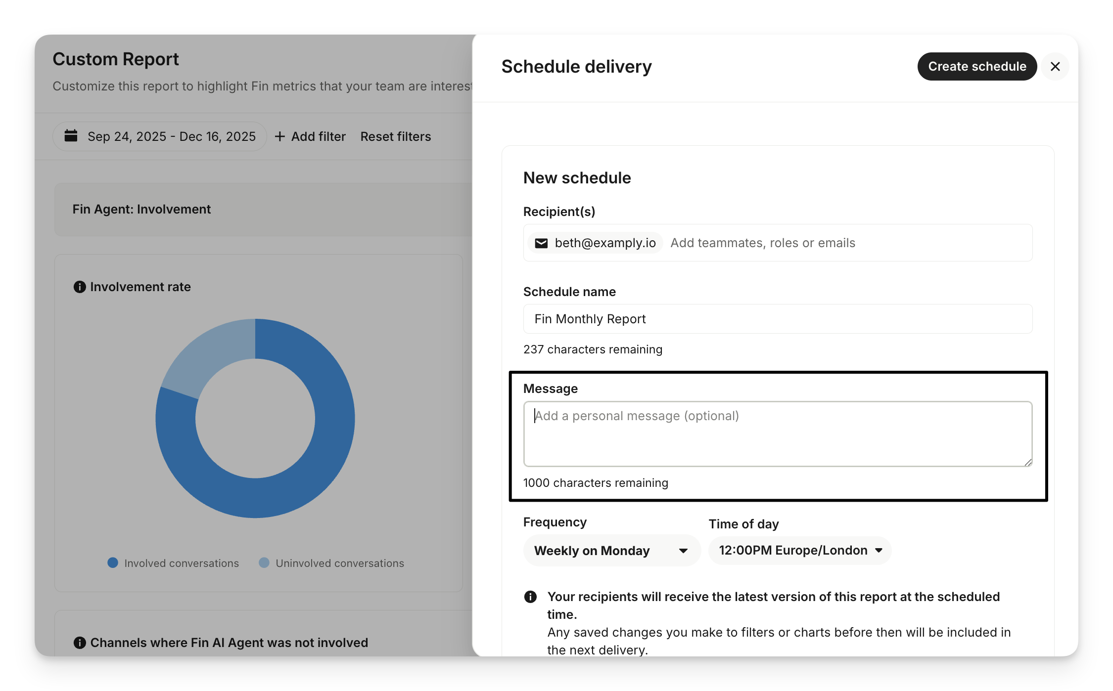 Send an optional message with your scheduled report so your stakeholders have some context on the report being shared.