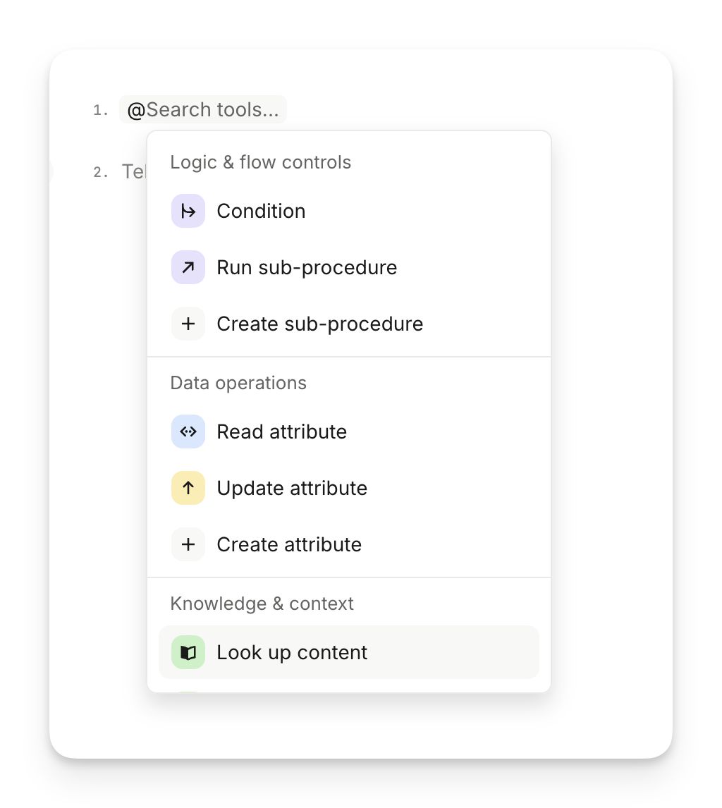You can tell Sweo what to do when the procedure is triggered by writing instructions. On top of these instructions you can also add deterministic controls that give Sweo more powers - such as conditions, or even tools to enable Sweo to access external data, update attributes.