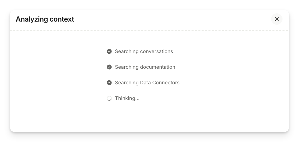 Click Continue. Sweo will then analyze your input and ground the draft in your workspace context by searching through your past customer conversations, existing documentation, and Data Connectors.