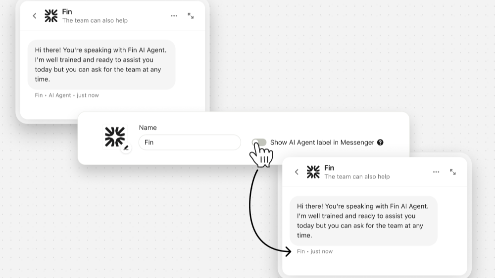 You can now choose how to let customers know they’re speaking with an AI Agent in Messenger, Zendesk Messaging or Tickets, and Salesforce cases.